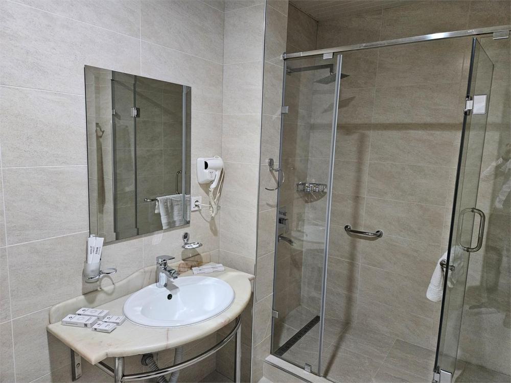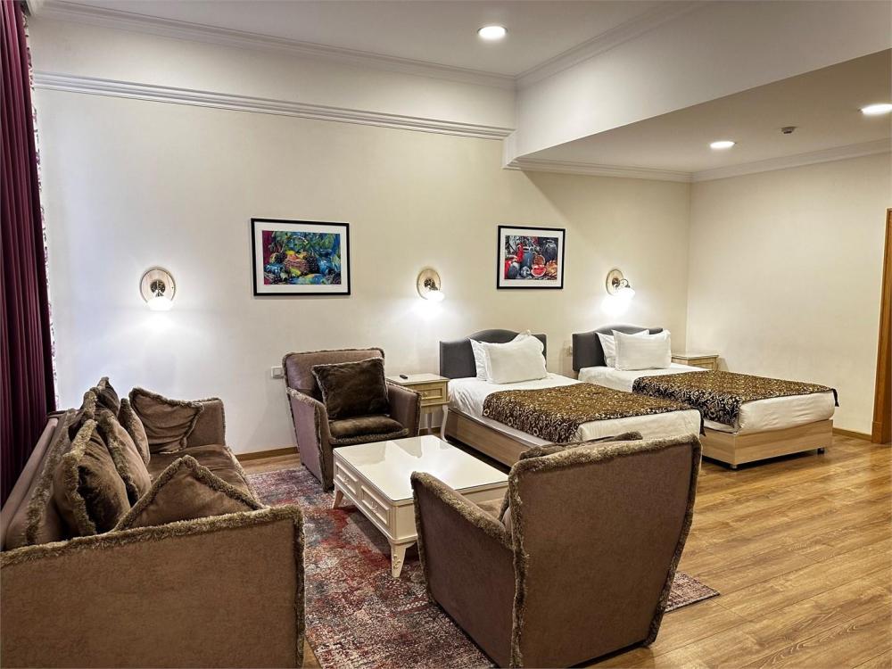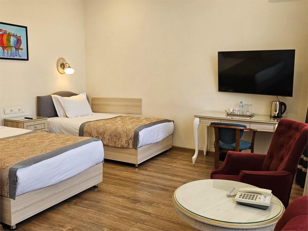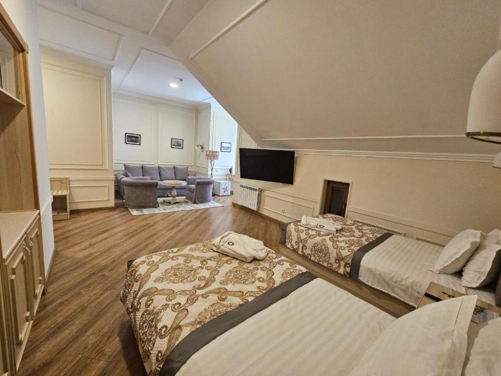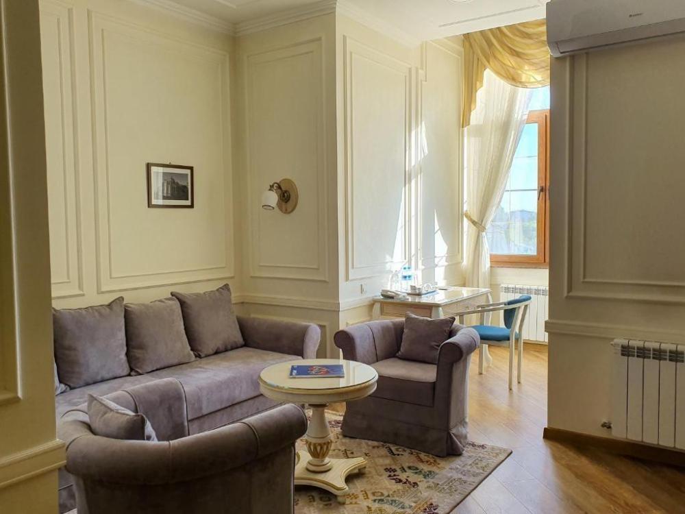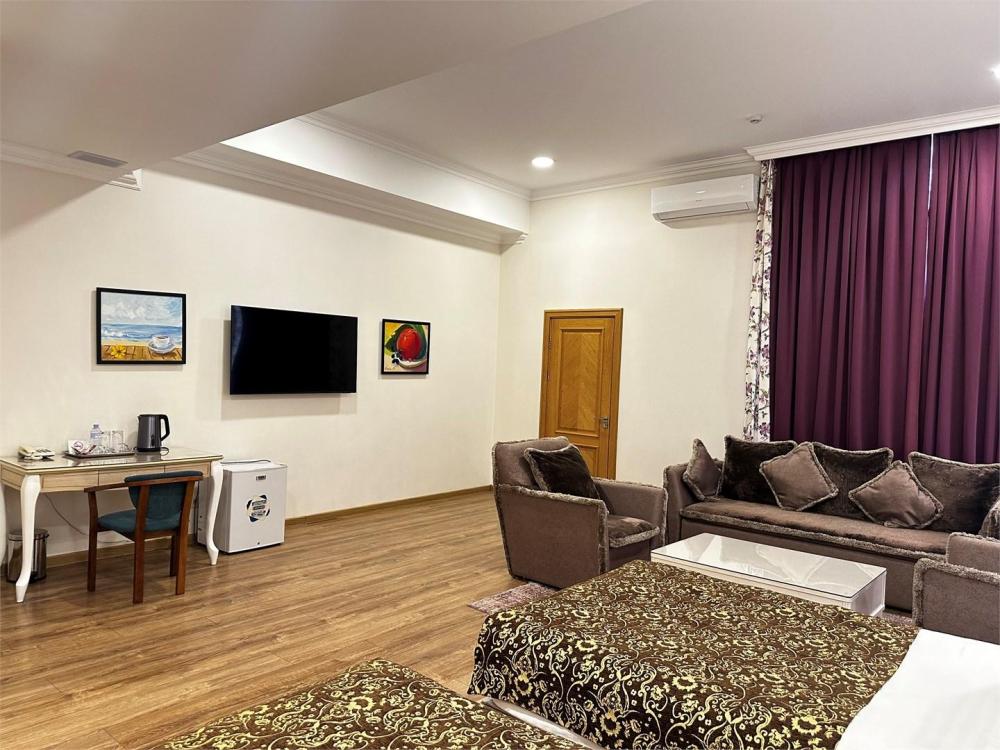 В номере имеется: бесплатные туалетно-косметические принадлежности, халат, собственная ванная с душем, полотенца, тапочки, фен, кондиционер, сейф, розетка около кровати, рабочий стол, гостиный уголок, звукоизоляция, телевизор,телефон, телевизор с плоским экраном, мини-бар, электрический чайник, обеденный уголок, обеденный стол.