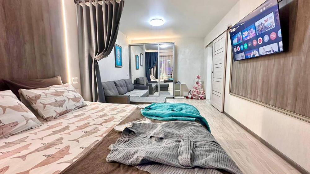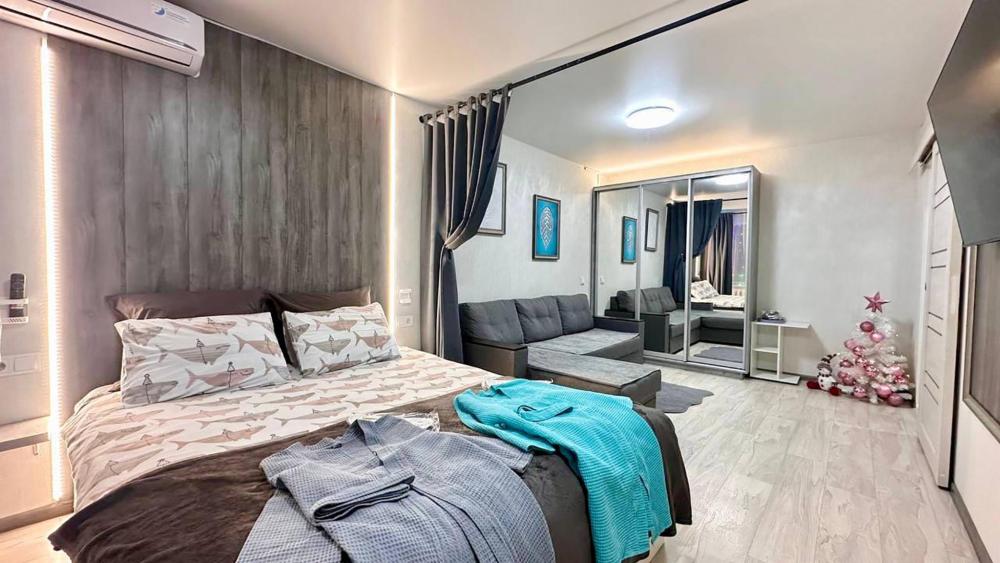 Комфортная 1-комнатная квартира в центре Коломны. Квартира 100% соответствует фото. Оснащенность апартаментов всем необходимым для комфортного отдыха: двуспальная кровать с ортопедическим матрасом и 2 раскладных дивана-кровать (6 спальных места), свежее постельное белье, комплект полотенец, халаты и тапочки, скоростной Wi-Fi, телевизор со Smart-TV ( комната и кухня), средства гигиены. Необходимая бытовая техника и посуда ( кондиционер, посудомоечная машина, стиральная машина, чайник, СВЧ, плита газовая, холодильник , посуда для приготовления и сервировки, гладильные принадлежности.