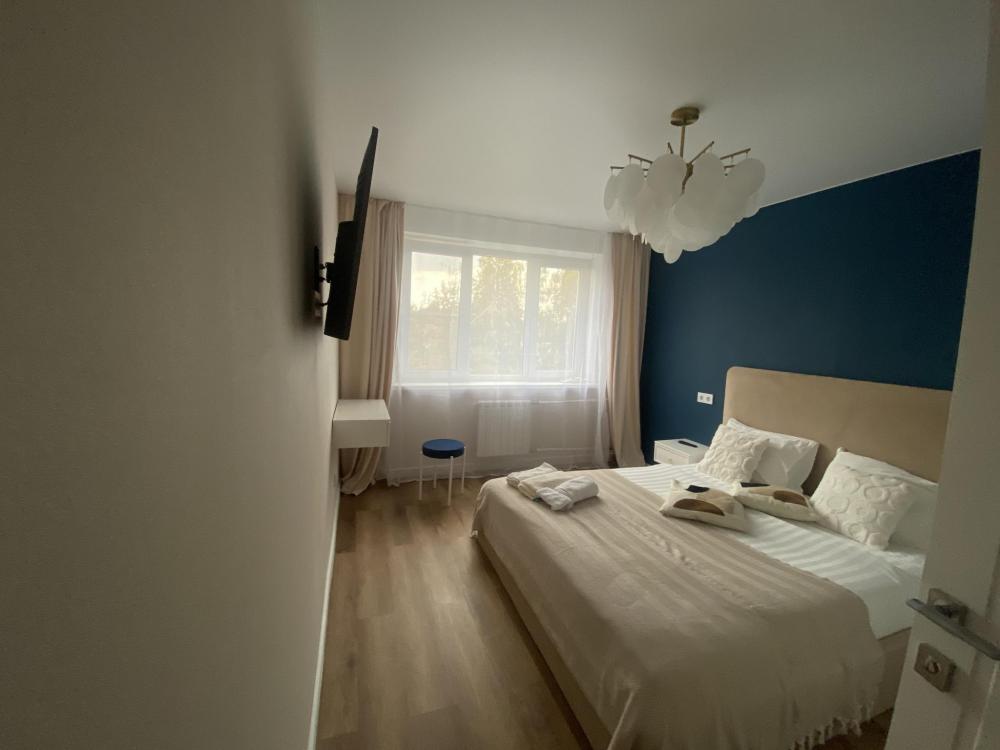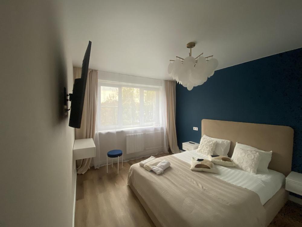 ашему вниманию предлагается двухкомнатная квартира в скандинавском дизайне, в спокойных тонах. Идеальная локация как для туризма, так и для бизнеса, самый центр. Все магазины рядом. При этом Старый город в пешей доступности - идеальное расположение для взыскательного туриста. Квартира после капительного ремонта. Все будет радовать глаз. Во всех наших апартаментах предусмотрено дистанционное заселение. Вам необходимо оплатить проживание, после этого вы получите подробную инструкцию по заселению со всеми кодами доступа в квартиру на период вашей брони . В квартире есть всё необходимое для Вашего комфортного проживания: кондиционер, бойлер на 30 литров - всегда горячая вода. Двуспальная кровать с удобным матрасом Икея и диван (возможно размещение 4х гостей), бельё и набор полотенец. WI-FI, ТV;смарт, плита, СВЧ, холодильник, чайник, набор посуды. Ванна, стиральная машина, фен, полотенца, шампунь, мыло, утюг, гладильная доска, сушилка. В базовую стоимость проживания входит один комплект белья на кровать и набор полотенец для двух гостей. Если во время проживания потребуется доп комплект на диваны - доплата 350 руб за 1 комплект. При проживании более 7 дней делается уборка и смена белья и полотенец ( без оплаты для проживающих гостей) Квартира находится в районе с развитой инфраструктуры. В шаговой доступности различные кафе, магазины, торговые центры, остановка городского транспорта, в 10 минутах езды городской парк.