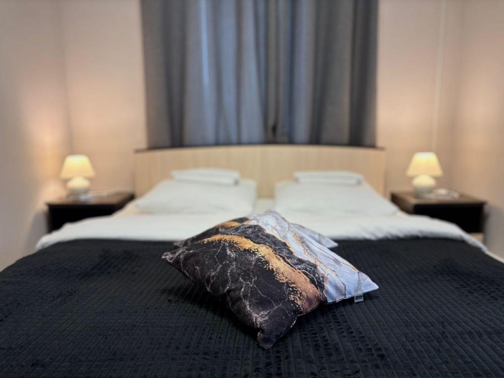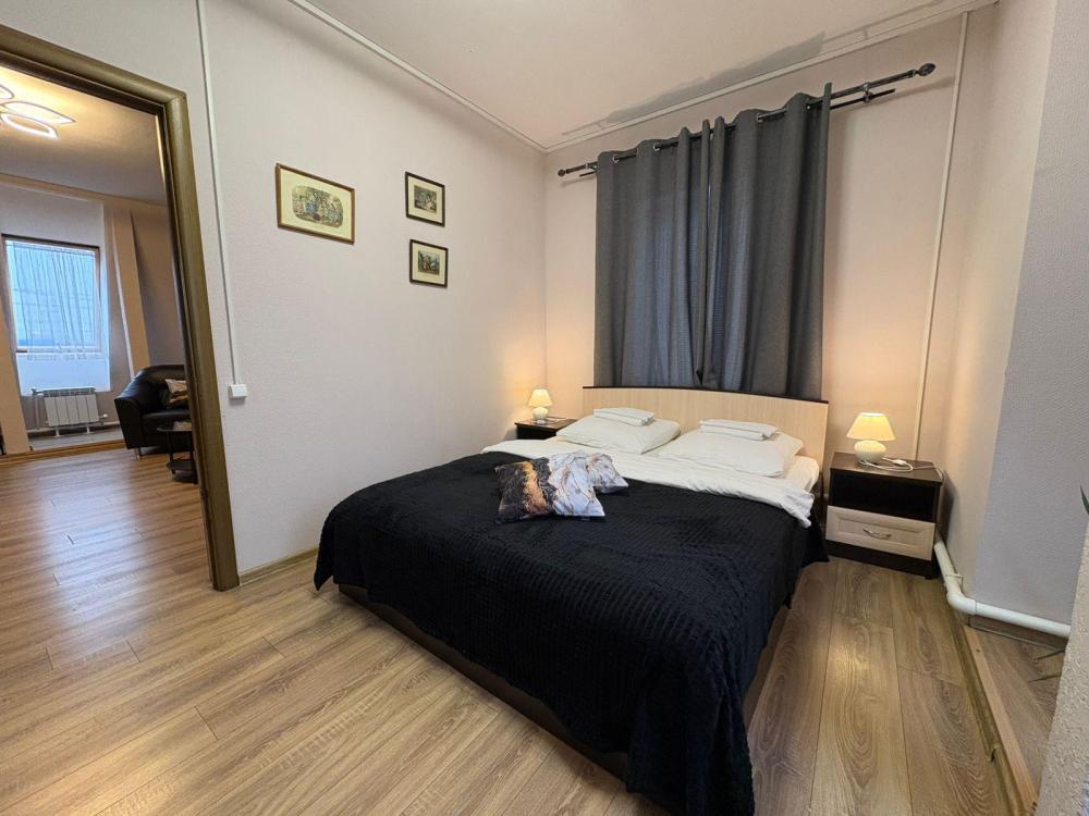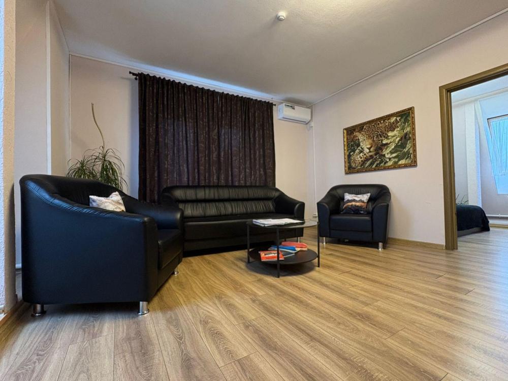 Двухкомнатный номер с большой кроватью, собственным санузлом, видом на тихую улицу. Во второй комнате - гостиная с мягкой мебелью, ТВ, холодильником, кондиционером