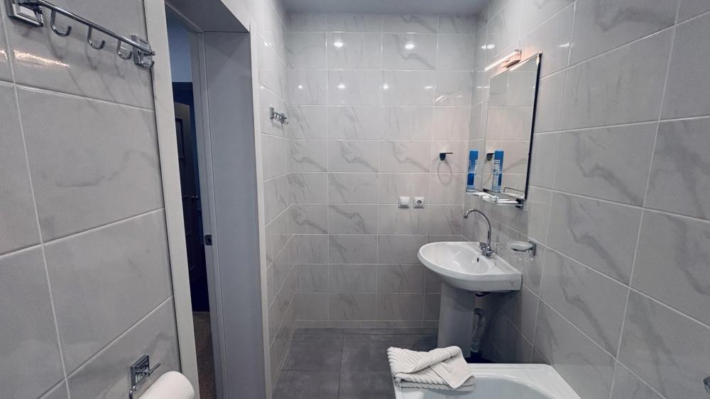 Однокомнатный номер с односпальной кроватью размером 90*200 и площадью около 15 м2. В номере есть холодильник, плазменный ТВ с функцией Smart, Wi-Fi, графин для воды/чашки. В ванной комнате установлена душевая кабина, имеются средства личной гигиены.