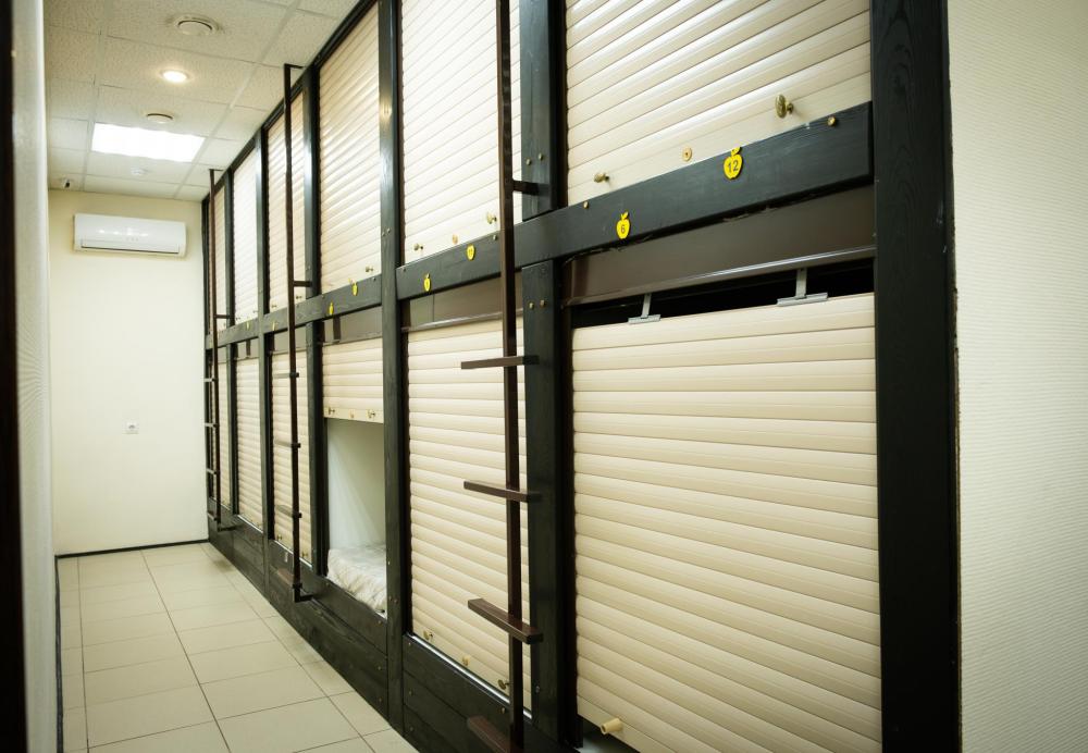 Одноместная капсула — капсула для одного человека. Оборудована всем необходимым для комфортного пребывания:свежее белье, вешалка, розетка, бесплатный интернет, личный свет, шумоизоляция, вентиляция, замки на дверцах.