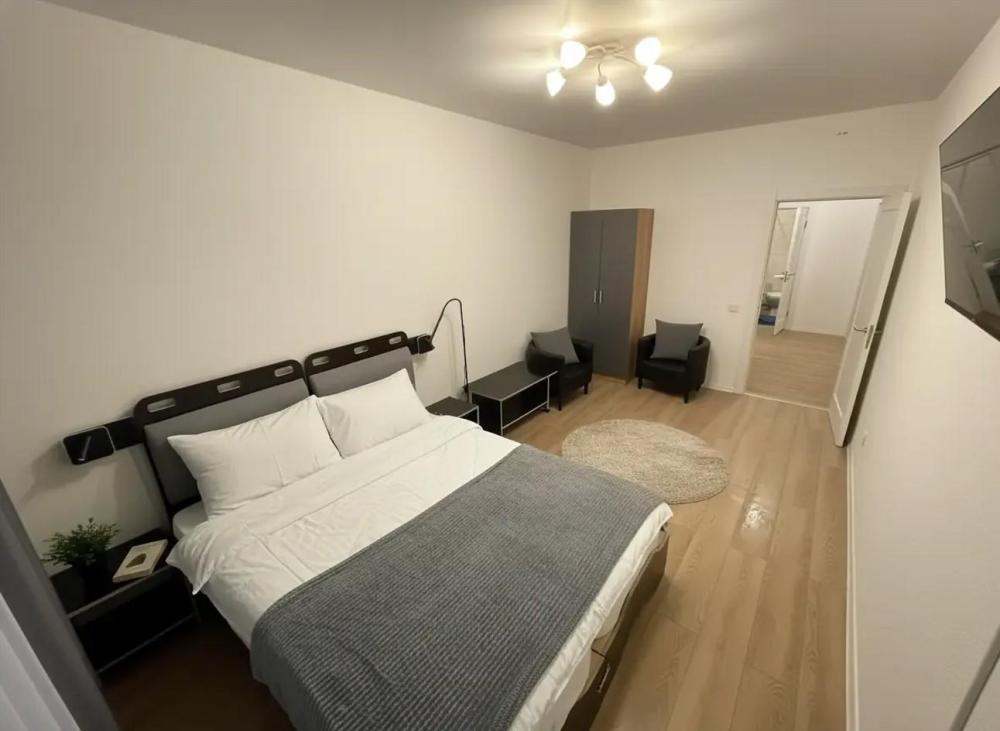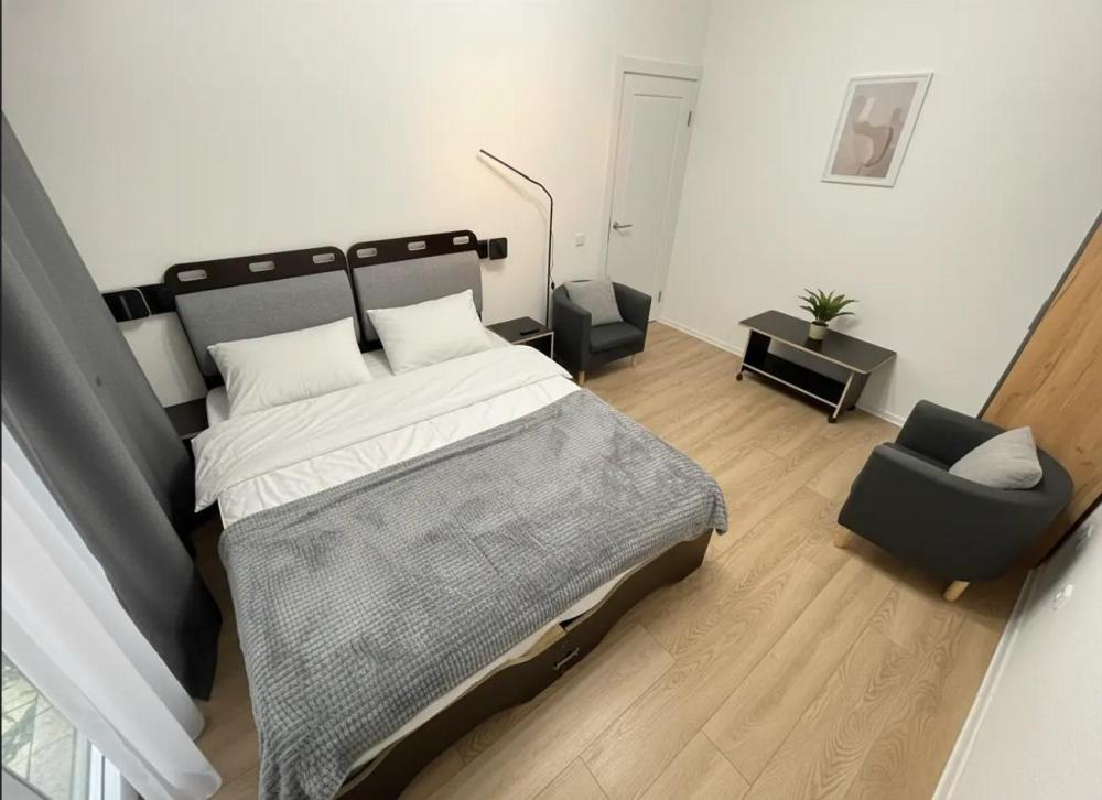 Уютная просторная квартира, в комнатах по две односпальные кровати с ортопедическими матрасами, которые можно сдвинуть в две большие двуспальные. Дополнительное спальное место - раздвижная тахта 80х190. Есть все необходимое для проживания. Санузел совместный. В квартире имеется вся необходимая мебель и техника: ЖК-Телевизор смарт ТВ, холодильник, электрочайник, стиральная машина, микроволновая печь, скоростной Wi-fi, постельный набор (одеяло, подушки), постельное белье, посуда для приготовления еды, столовые приборы.