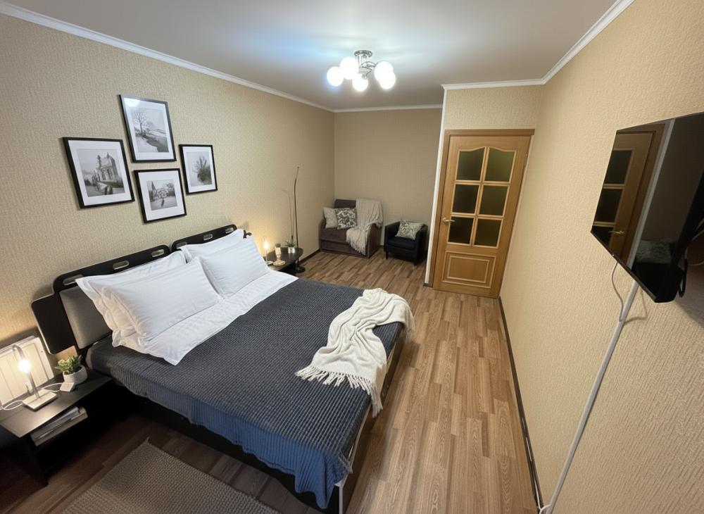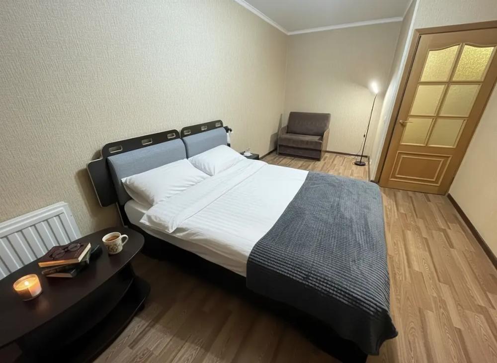 Уютная просторная квартира, в комнате двуспальная кровать с ортопедическим матрасом и два раскладных односпальных места, есть все необходимое для проживания. Окна квартиры выходят во двор. Большая застекленная лоджия. Санузел раздельный с ванной. В квартире имеется вся необходимая мебель и техника: ЖК-Телевизор смарт ТВ, холодильник, электрочайник, стиральная машина, микроволновая печь, скоростной Wi-fi, постельный набор (одеяло, подушки), постельное белье, посуда для приготовления еды, столовые приборы.