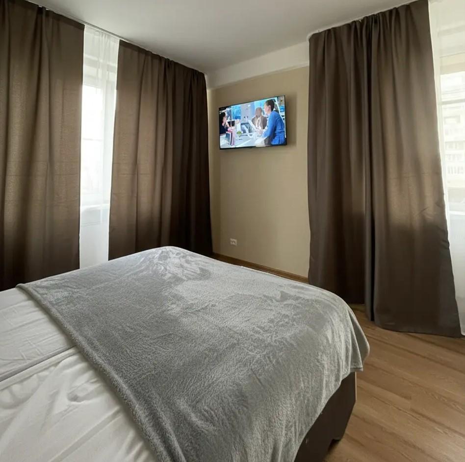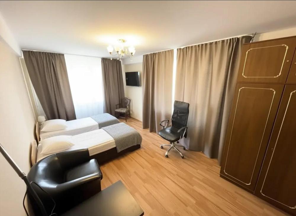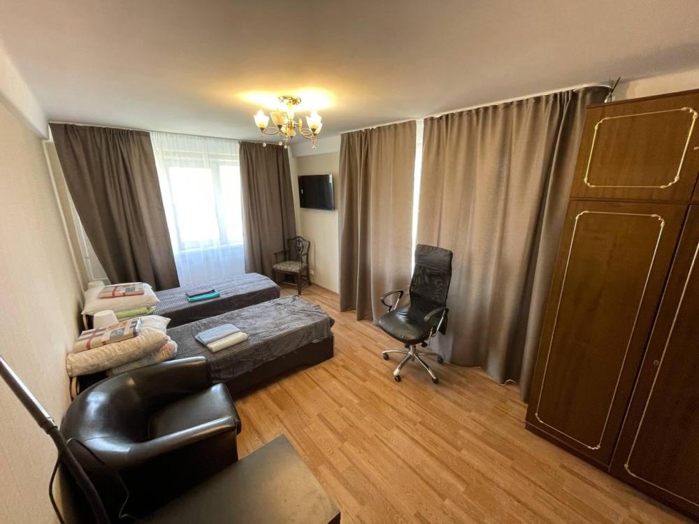 Уютная просторная квартира класса комфорт, в каждой комнате по две сдвигающихся кровати с ортопедическими матрасами, плюс раскладной диван. Возможно размещение до десяти человек. Есть все необходимое для проживания. Санузел раздельный с ванной. Есть застекленный балкон. Рядом с домом много магазинов, остановки автобусов. В квартире имеется вся необходимая мебель и техника: ЖК-Телевизор смарт ТВ, холодильник, электрочайник, стиральная машина, микроволновая печь, скоростной Wi-fi, постельный набор (одеяло, подушки), постельное белье, посуда для приготовления еды, столовые приборы.
