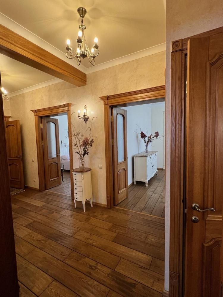 Интерьер квартиры наполнен спокойствием и гармонией. Здесь нет резких линий и холодных решений — всё построено на мягких оттенках, натуральных фактурах и продуманном освещении. Свет не доминирует, а деликатно подчеркивает пространство, создавая ощущение уюта и камерности. Каждая деталь интерьера словно приглашает замедлиться, отвлечься от суеты и сосредоточиться на чувствах и эмоциях.