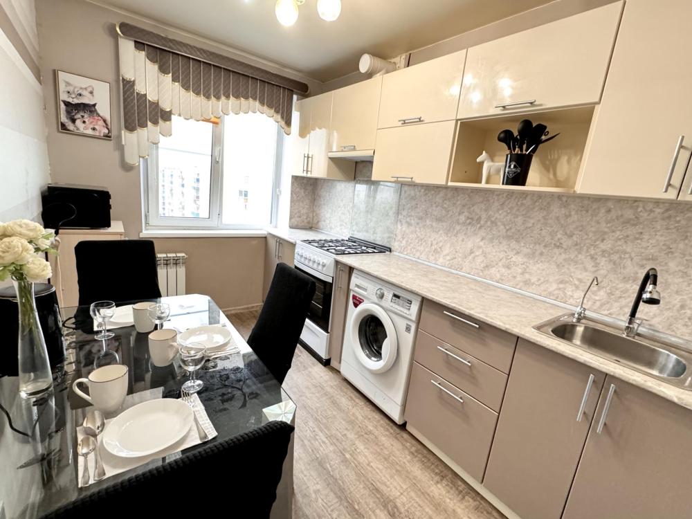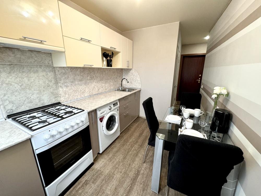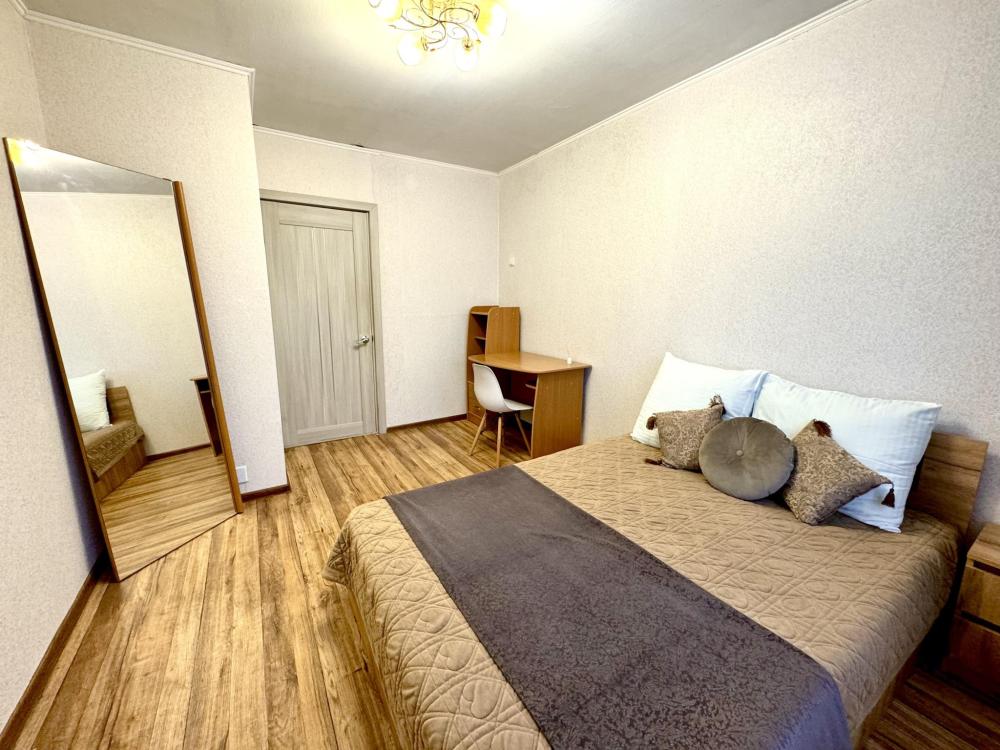 Трехкомнатная квартира оборудована всей необходимой мебелью и техникой для проживания 6 человек: -Спальных мест 6 (двуспальный диван и две двуспальные кровати); -Бесплатный Wi-FI; -Бытовая техника: кондиционер, плита, духовка, микроволновая печь, холодильник, чайник, телевизор, стиральная машина, утюг, фен; -Постельное белье, полотенца, набор посуды и столовых приборов. Производится дезинфекция после каждого гостя. Чистота и порядок гарантированы.