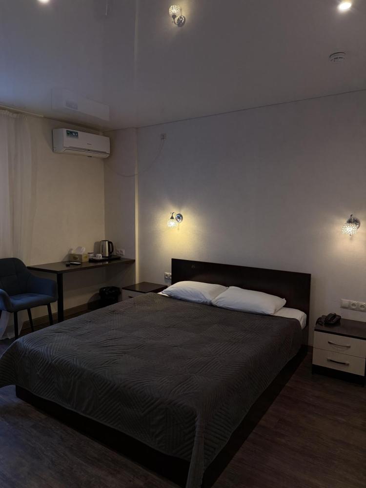 Двухместный просторный номер со свежим ремонтом, с 1 большой кроватью, кабельным телевидением и кондиционером. Услуги и удобства: Кондиционер, Фен, Халат, Холодильник, Бесплатные туалетные принадлежности, Санузел, Тапочки, Ванна или душ, Напольное покрытие, Телевизор с плоским экраном, Шкаф, Полотенца, Белье, Обеденный стол, Туалетная бумага, Мягкий стул, Кресло.