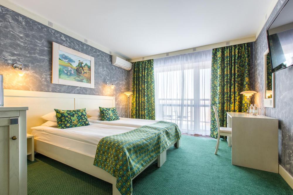 Однокомнатные комфортабельные номера в основном корпусе, расположены на 1-4 этажах, с балконом, сочетают в себе уют, яркость дизайна, выразительные интерьеры с авторским декорированием стен и мебели. Всего в отеле 9 номеров, средняя площадь каждого номера – 18 кв м. В номере данной категории нет возможности установки дополнительного места. Время заезда — после 18.00, время выезда — до 15:00.