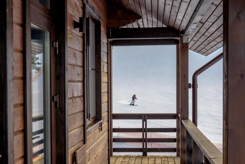 Номер в Спа Отеле (нижний парк "Золотой Долины", 30 метров до подъемника). Двухэтажный номер площадью 50 кв. м. Две спальни на втором этаже и кухня-гостиная на первом. Большие панорамные окна и собственная терраса. Оборудованная кухня (плита, посудомойка, холодильник, микроволновка, чайник, комплект посуды). Дополнительное спальное место (раскладной диван в гостиной), фен, просторная ванная комната с душем. Общая сушильная комната для горнолыжного снаряжения