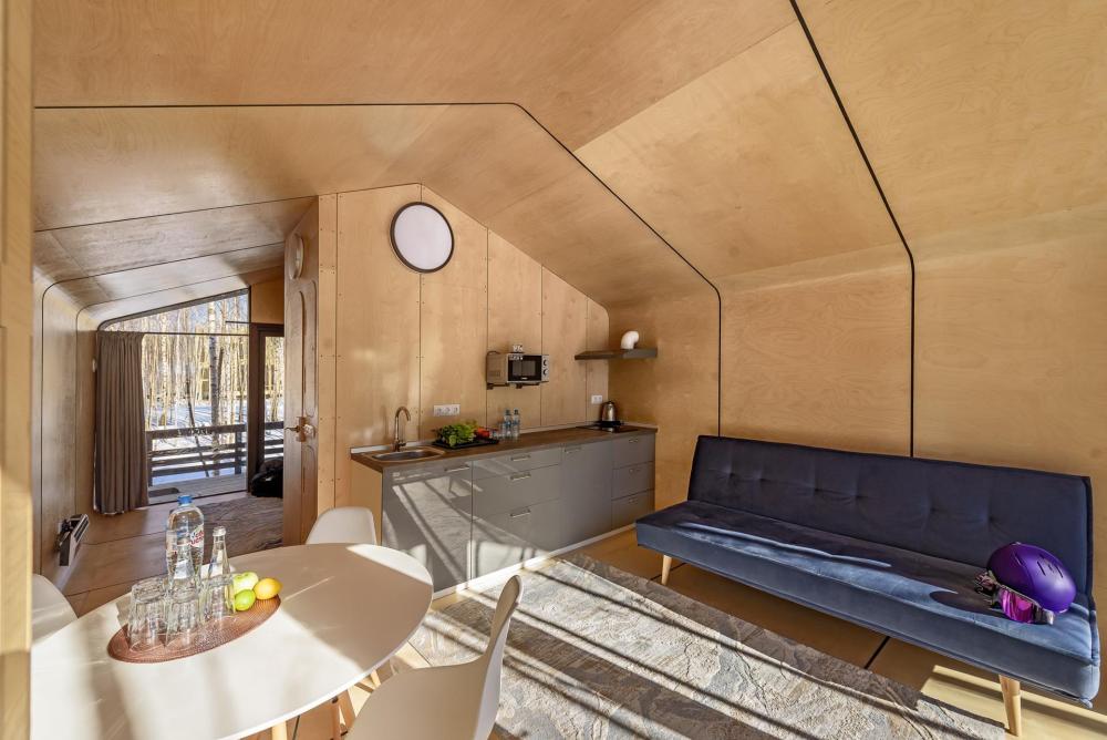 Дом располагается в нижнем парке "Золотой Долины" (30 метров до подъемника). Тролль-дом на два-три человека, в котором будет внутри будет тепло и комфортно в любую погоду. Красивый дом с панорамными окнами, небольшой кухней и уютной спальней. Расположен у подножия горнолыжных склонов. 600 метров до семейного ресторана "Ферма Троллей" с рыбалкой и веревочным парком, в 400 метрах от пляжа и вейк-станции.