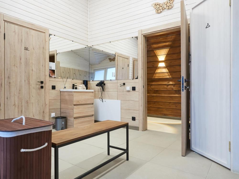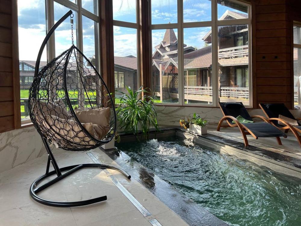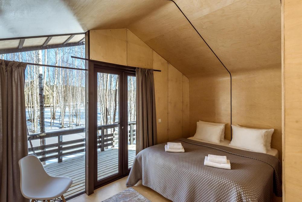 Светлый, удобный деревянный двухэтажный коттедж площадью 95 кв. м. с террасой на первом этаже. 1 этаж: спальня, сауна и кухня-гостиная (30 кв.м) с большими панорамными окнами и камином. 2 этаж: 2 спальни с мансардными окнами и зона отдыха. Комфортно вмещает компанию из 6 человек, возможны дополнительные места. Во внутреннем дворике мангал. Услуги и удобства: оборудованная кухня – гостиная, большой обеденный стол, холодильник, эл. плита, микроволновая печь, посудомоечная машина, эл. чайник, ЖК телевизор, два сан. узла, сауна, душевая кабина с теплым полом, камин, сушильный шкаф, постельное белье, полотенца, гигиеническая продукция. Размер кровати: 6 односпальных кроватей + 1 раскладной диван.