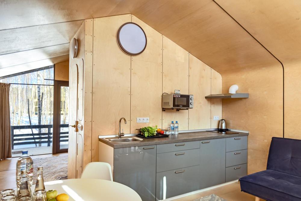 Однокомнатный номер площадью 30 кв. м. На первом этаже - собственная терраса, на втором этаже - балкон. Кухонная зона: варочная панель, мини-холодильник, чайник, комплект посуды Двухэтажный корпус в шаговой доступности от горнолыжного центра. Полотенца, халаты и тапочки, гель/душа-шампунь, пенка для рук, зубной набор по запросу на ресепшн. Парковка около отеля; Общая мангальная зона у корпуса без оплаты. Проживание с животными не предусмотрено.