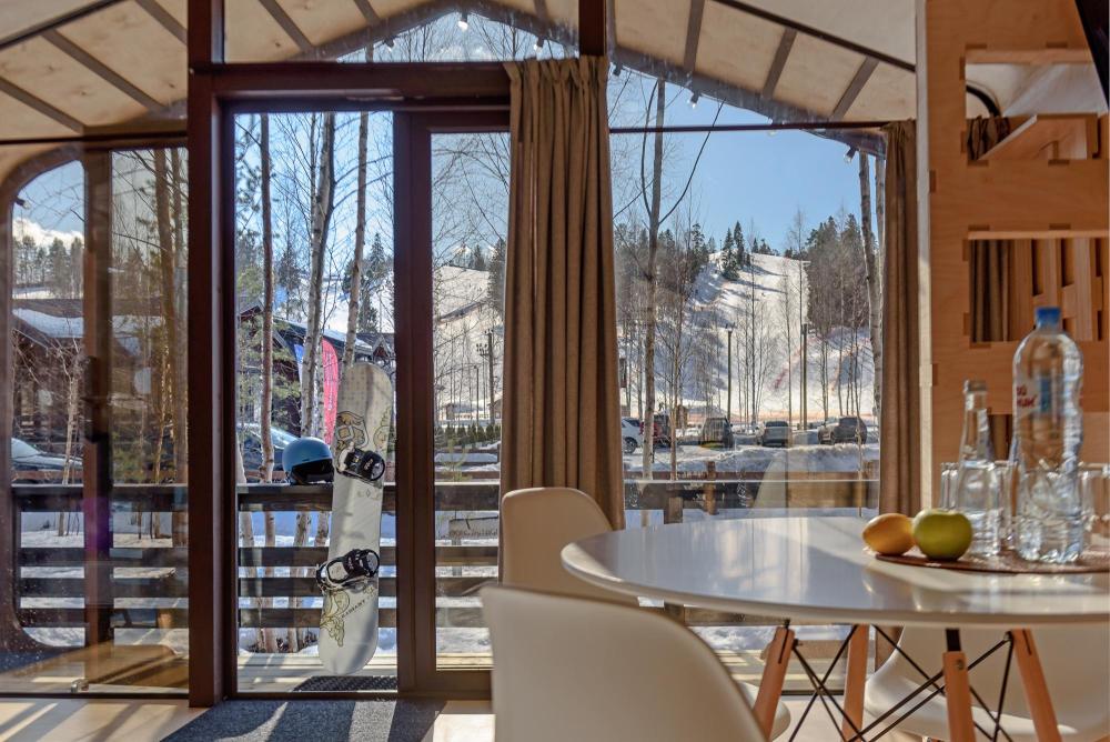 Дом располагается в нижнем парке "Золотой Долины" (30 метров до подъемника). Тролль-дом на два-три человека, в котором будет внутри будет тепло и комфортно в любую погоду. Красивый дом с панорамными окнами, небольшой кухней и уютной спальней. Расположен у подножия горнолыжных склонов.