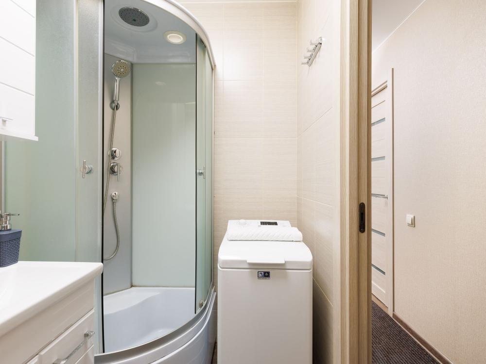 Студио с полностью оборудованной кухонной зоной, чайная станция, чай, кофе, спальной зоной, ТВ, WI-FI, шкаф, вешалка. Собственный санузел. Стиральная машина, туалетные принадлежности, тапочки.