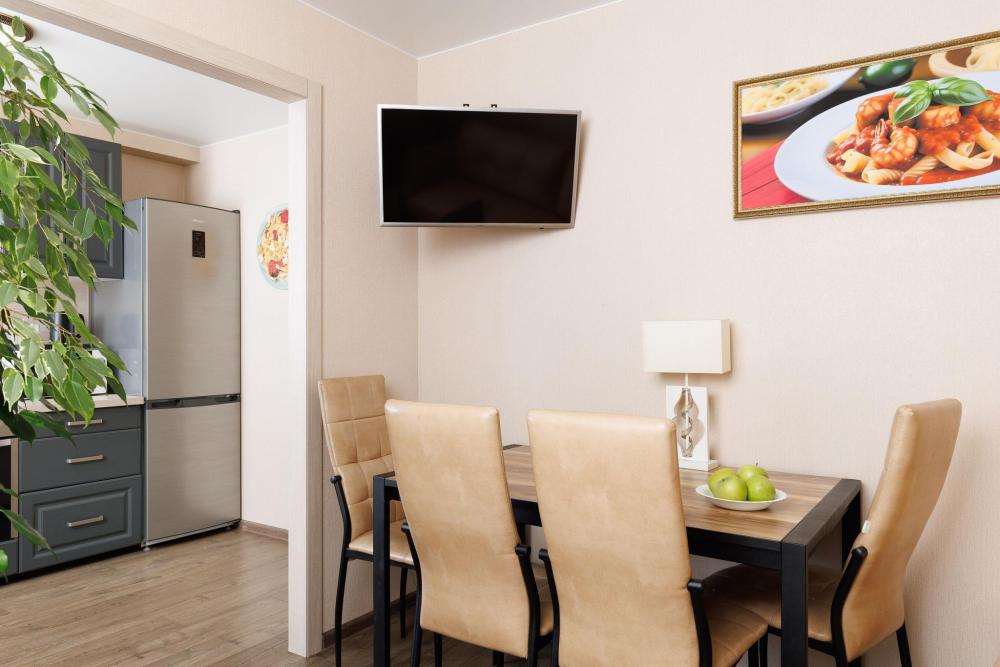 Однокомнатные апартаменты с полностью оборудованной кухонной комнатой, чайная станция, чай, кофе, спальной комнатой, ТВ, WI-FI, кровати, тумбы, шкаф, диван, вешалка. Собственный санузел. Стиральная машина, туалетные принадлежности, тапочки.