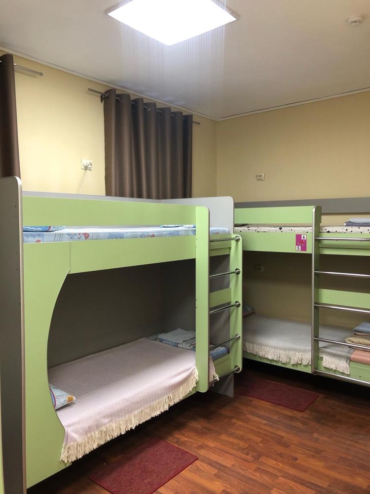 Кровать в общем шестиместном номере. Номер оснащен двухъярусными кроватями, местом для хранения одежды, предоставляется постельное белье. Общая ванная комната находится на этаже.
