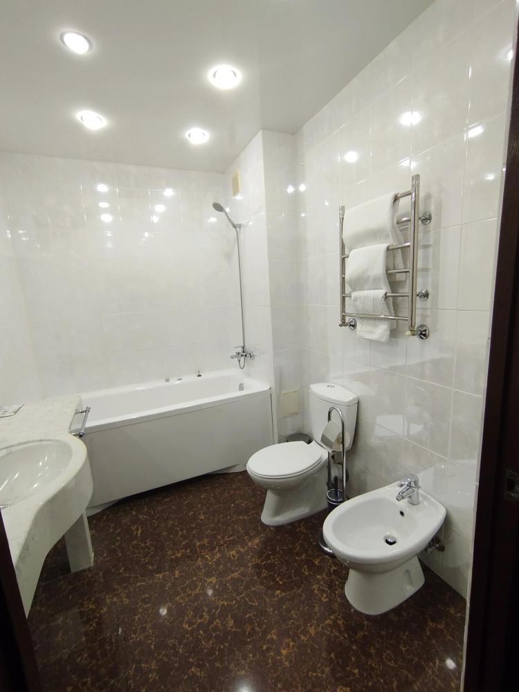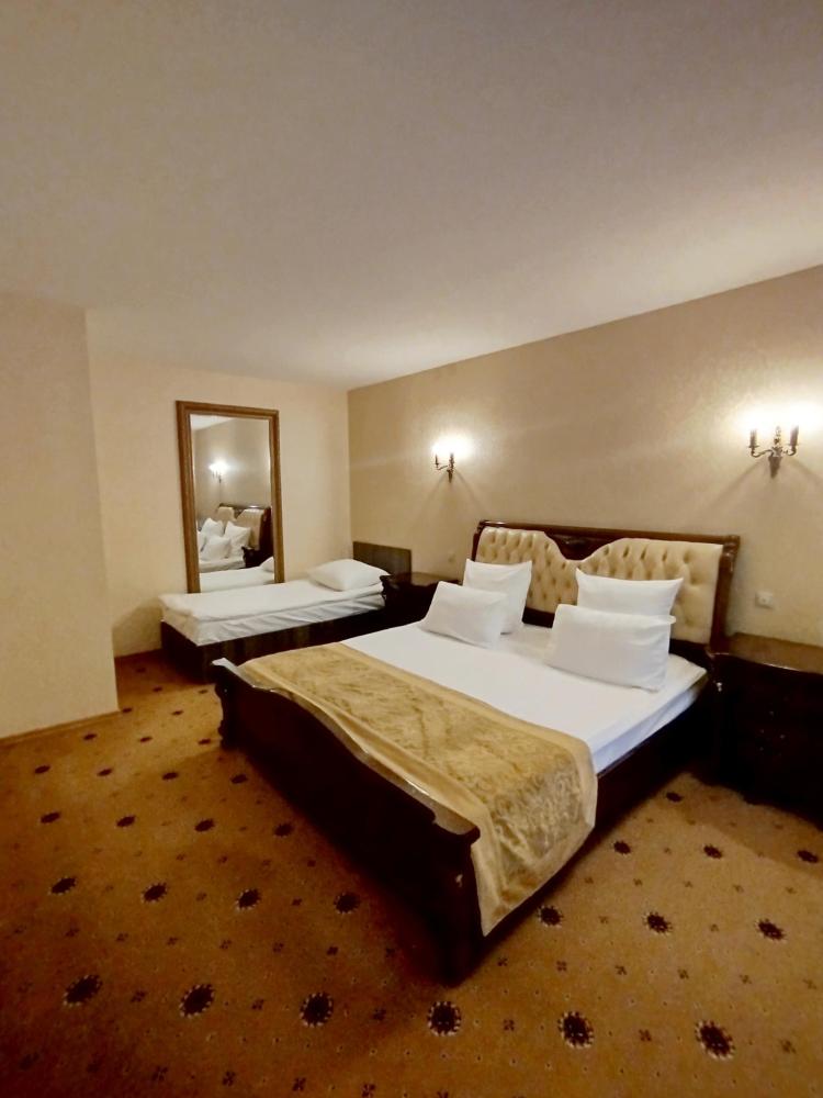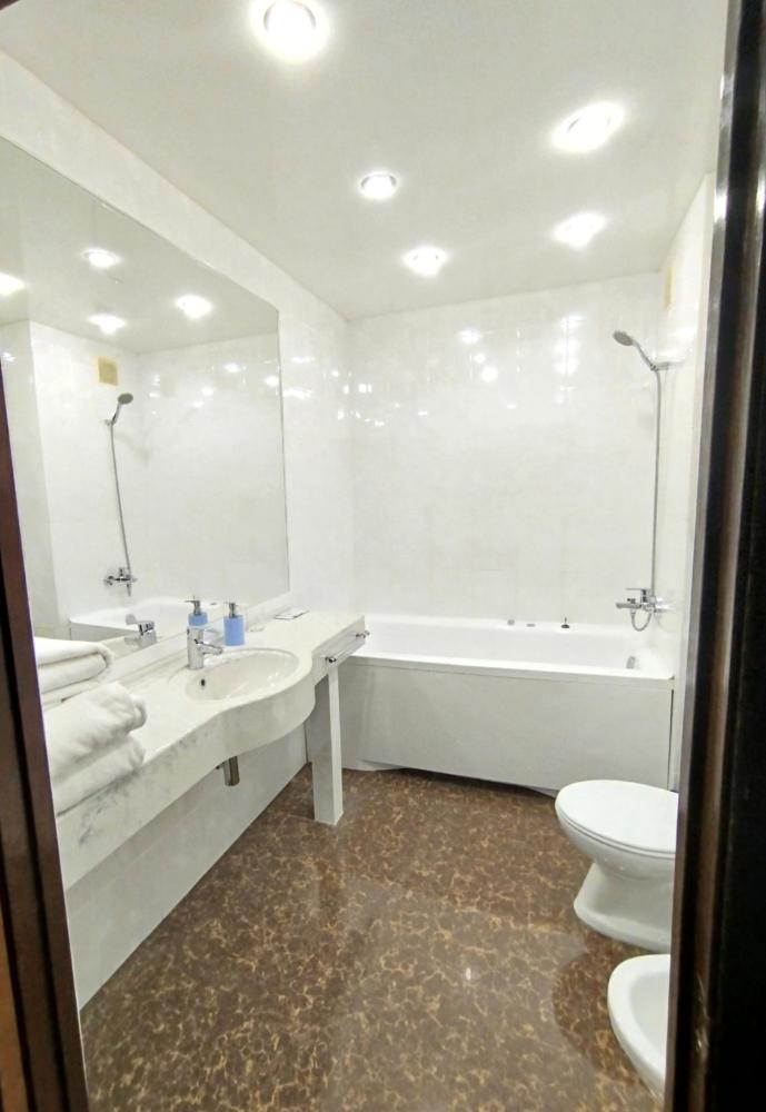 Номер поделен на две зоны: Элегантная и комфортабельная гостиная оснащена жидкокристаллическим телевизором с многоканальным спутниковым телевидением, кондиционером, холодильником, кожаной мебелью, раскладывающим круглым столом и ретро-телефоном из дерева под старину; Зона отдыха с большой двуспальной кроватью, размером 1,80x2,00. Ванная комната оснащена джакузи и биде, полом с подогревом, большим зеркалом, феном, полотенцесушителем, набором банных принадлежностей (полотенце, халат).