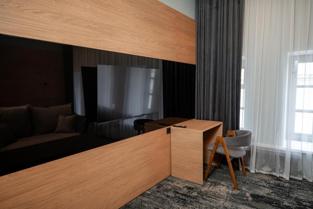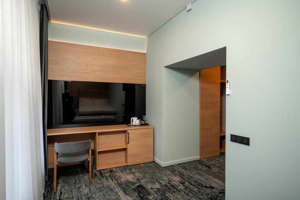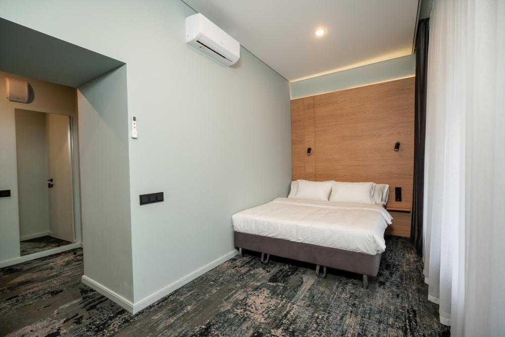 Уютный и светлый номер категории «Стандарт» идеально подойдёт для деловой поездки или отдыха. В номере есть удобная кровать, рабочая зона, телевизор, холодильник и кондиционер. Всё необходимое для комфортного пребывания в самом центре города.