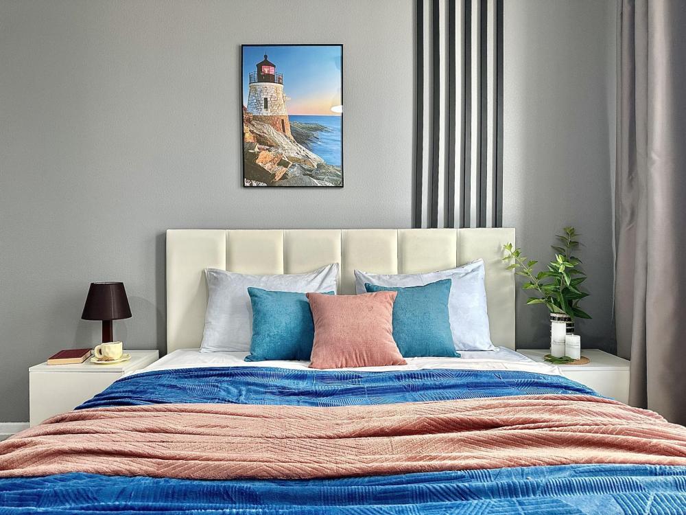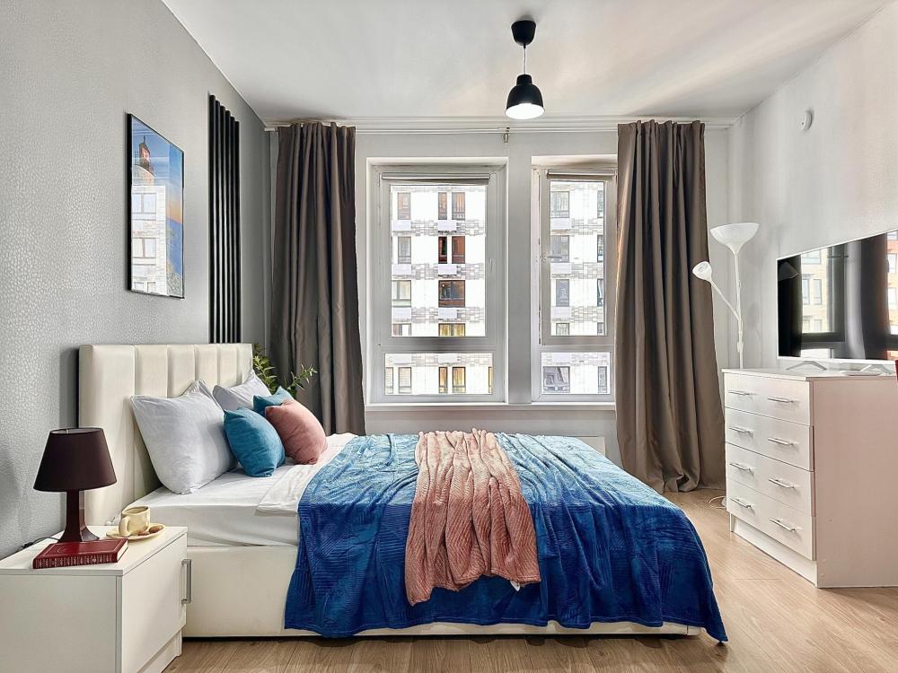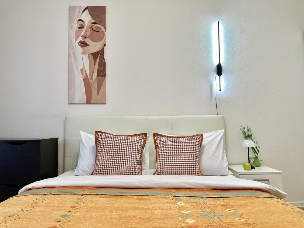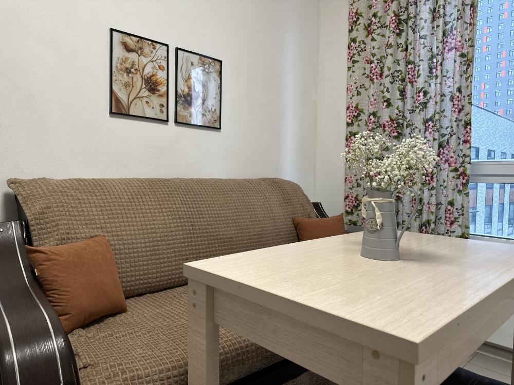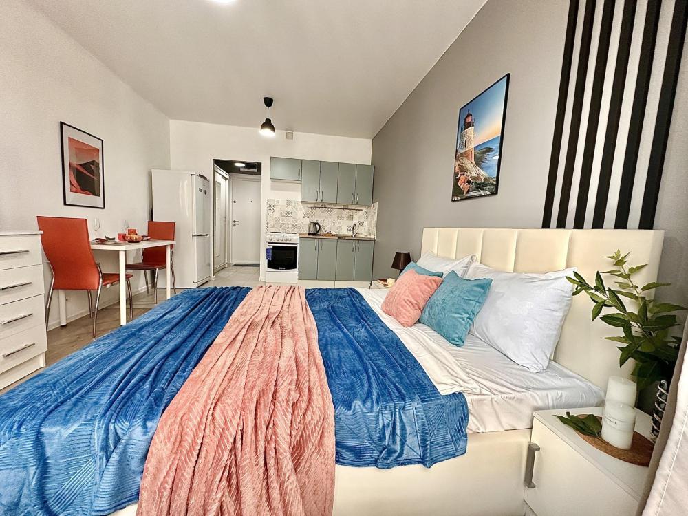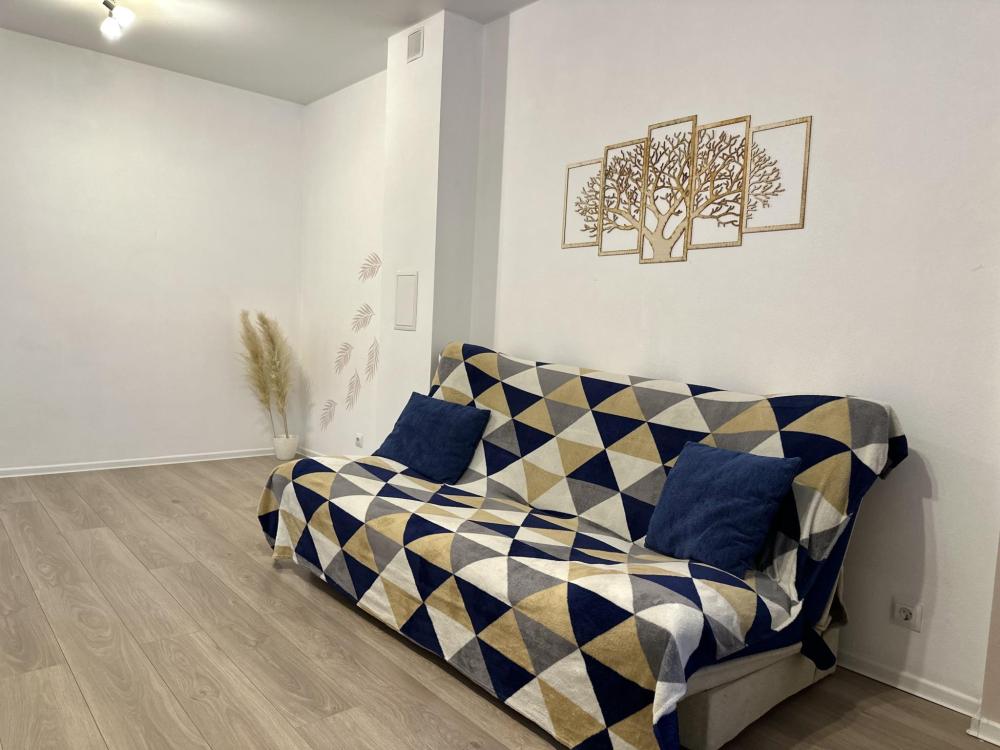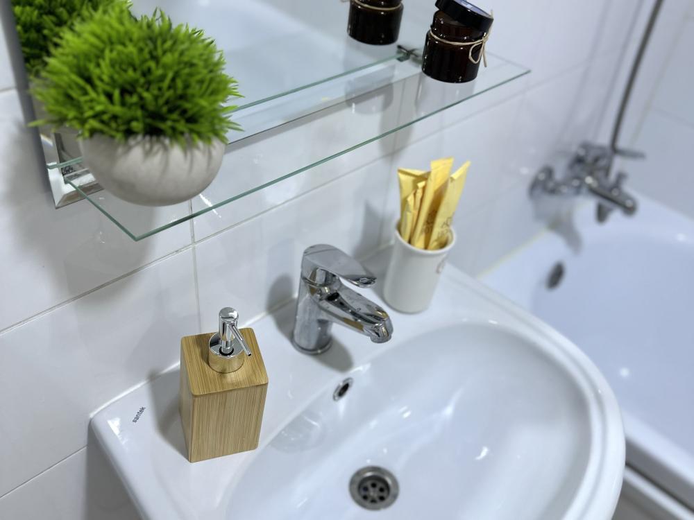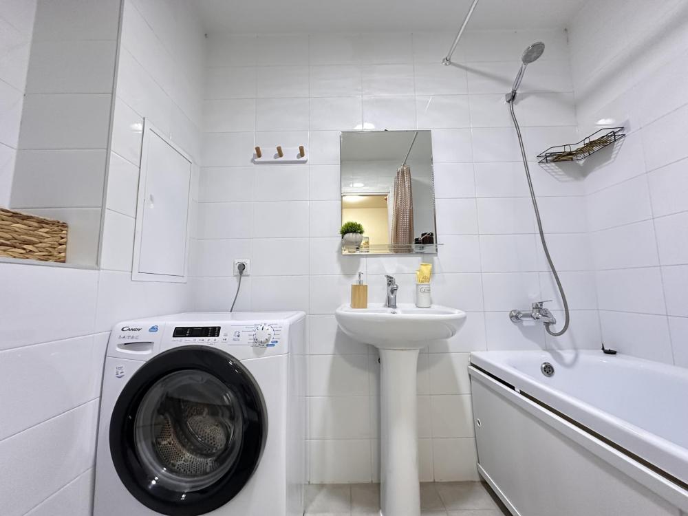 Квартира оборудована всем необходимым: - Вместимость до 2 гостей (двуспальная кровать+двуспальный диван) - Полотенце, тапочки, зубной набор, шампунь, гель для душа - Санузел совмещённый, ванна, стиральная машина, фен, утюг - Полноценная кухня (индукционная плита, духовка, холодильник, микроволновка, чайник) - Высокоскоростной Wi-Fi и ТВ