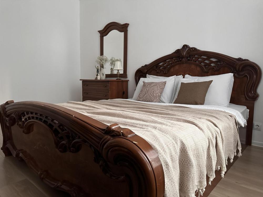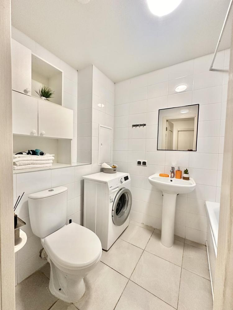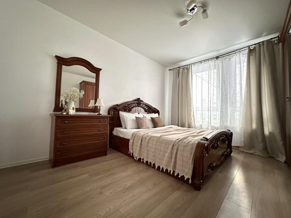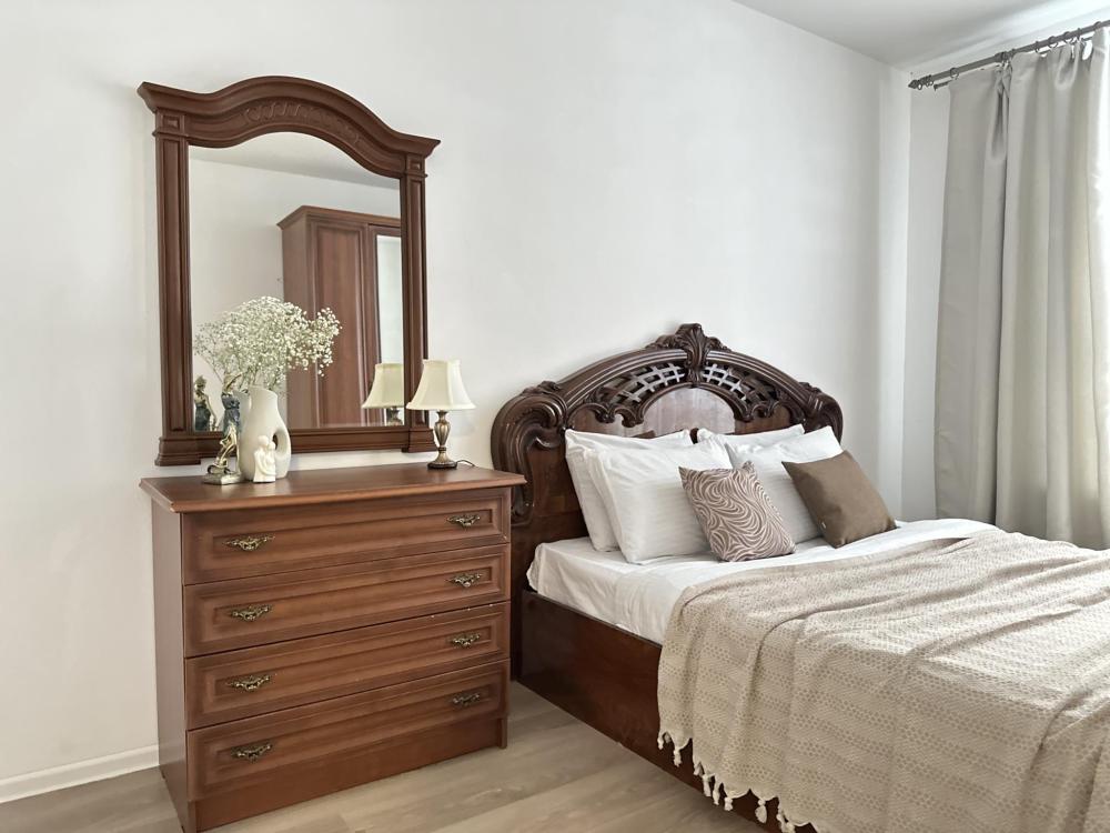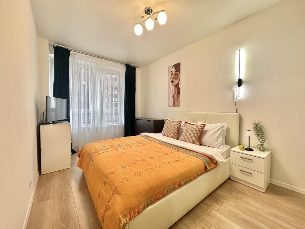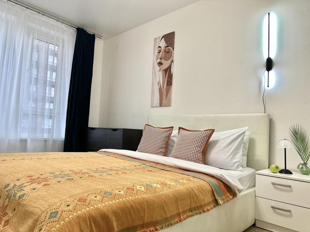 Квартира оборудована всем необходимым: - Вместимость до 6 гостей (2 двуспальные кровати+ ракладной диван) - Полотенце, тапочки, зубной набор, шампунь, гель для душа - 2 санузела, один совмещённый с ванной и отдельно туалет, стиральная машина, фен, утюг - Полноценная кухня (электроплита, холодильник, микроволновка, чайник) - Высокоскоростной Wi-Fi и ТВ