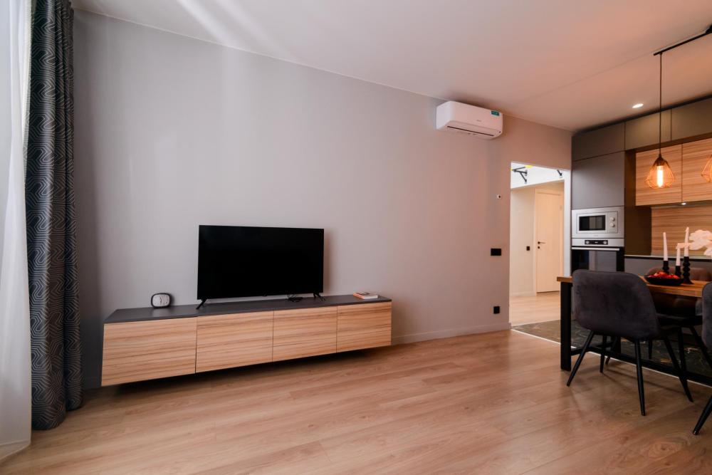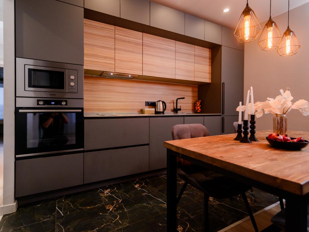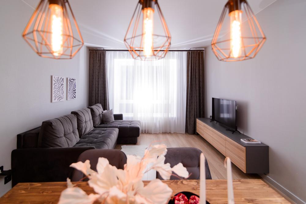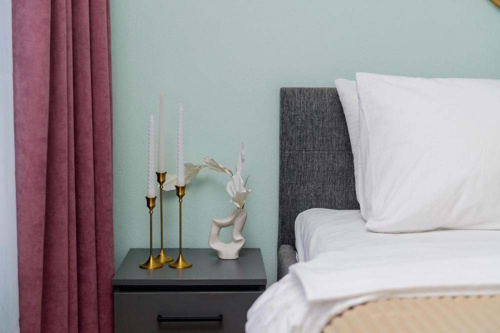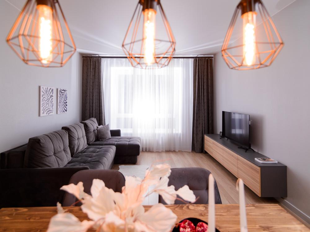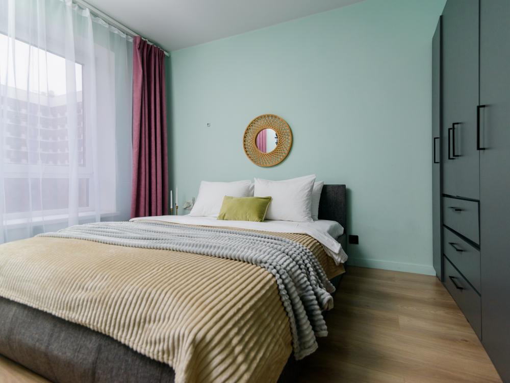 Квартира оборудована всем необходимым: - Вместимость до 6 гостей (2 двуспальные кровати + раскладной диван) - Полотенце, тапочки, зубной набор, шампунь, гель для душа - 2 санузла, один совмещённый с ванной и отдельно туалет, стиральная машина, фен, утюг - Полноценная кухня (электроплита, холодильник, микроволновка, чайник) - Высокоскоростной Wi-Fi и ТВ, кондиционер