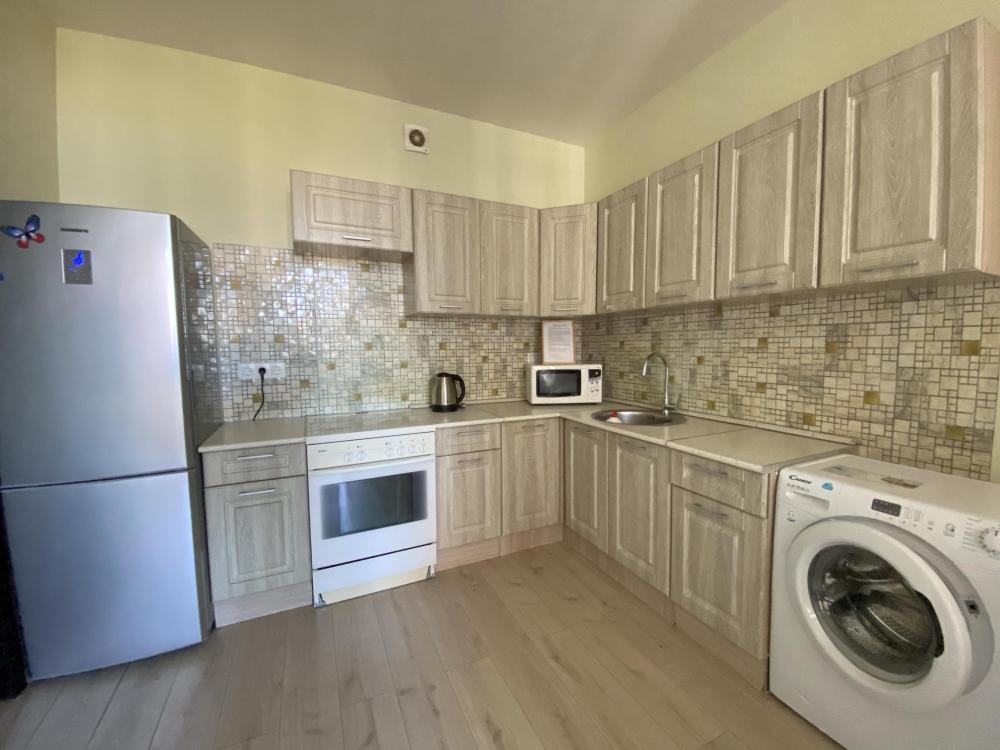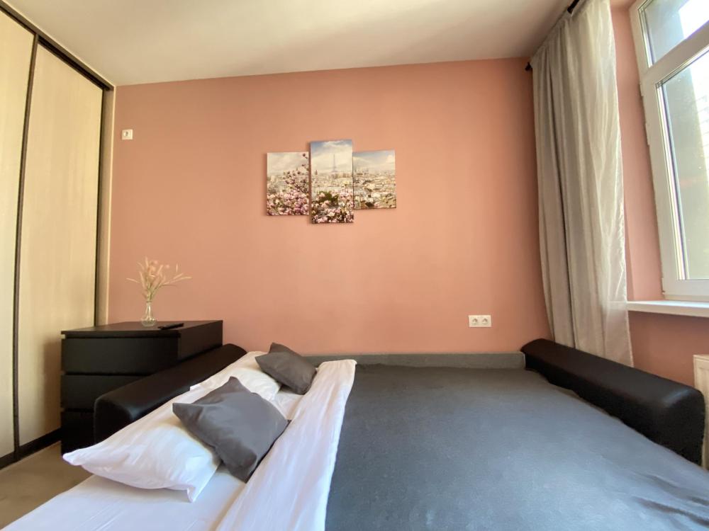 Квартира оборудована всем необходимым: - Вместимость до 4 гостей (двуспальная кровать+двуспальный диван) - Полотенце, тапочки, зубной набор, шампунь, гель для душа - Санузел совмещённый, ванна, стиральная машина, фен, утюг - Полноценная кухня (электроплита, духовка, холодильник, микроволновка, чайник) - Высокоскоростной Wi-Fi и ТВ