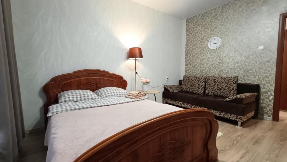 Апартаменты однокомнатные располагаются в центре города Котлас. В квартире одна комната, отдельная кухня, ванная комната. В комнате для отдыха гостей: кровать 160*200 см, удобный диван 160*200 см. Для удобства гостей бесплатный Wi-Fi интернет, стиральная машина, плита, холодильник, микроволновая печь, телевизор, чайник, утюг, полотенца, белье.