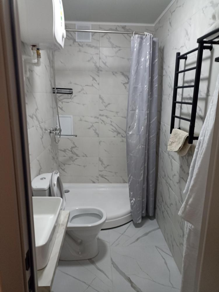 Однокомнатный номер: две семейные кровати, ЖК телевизор, комод, холодильник, шкаф для одежды, обеденный стол, чайник, стулья. сплит система-кондиционер. В ванной: ванна, бойлер, Фен . Возможность размещения до 2 гостей . Бесплатный Wi-Fi Интернет Предоставляется комплект одноразовых туалетных принадлежностей мыло, шампунь., а также тапочки и халат. Площадь номера 26,4 кв.м