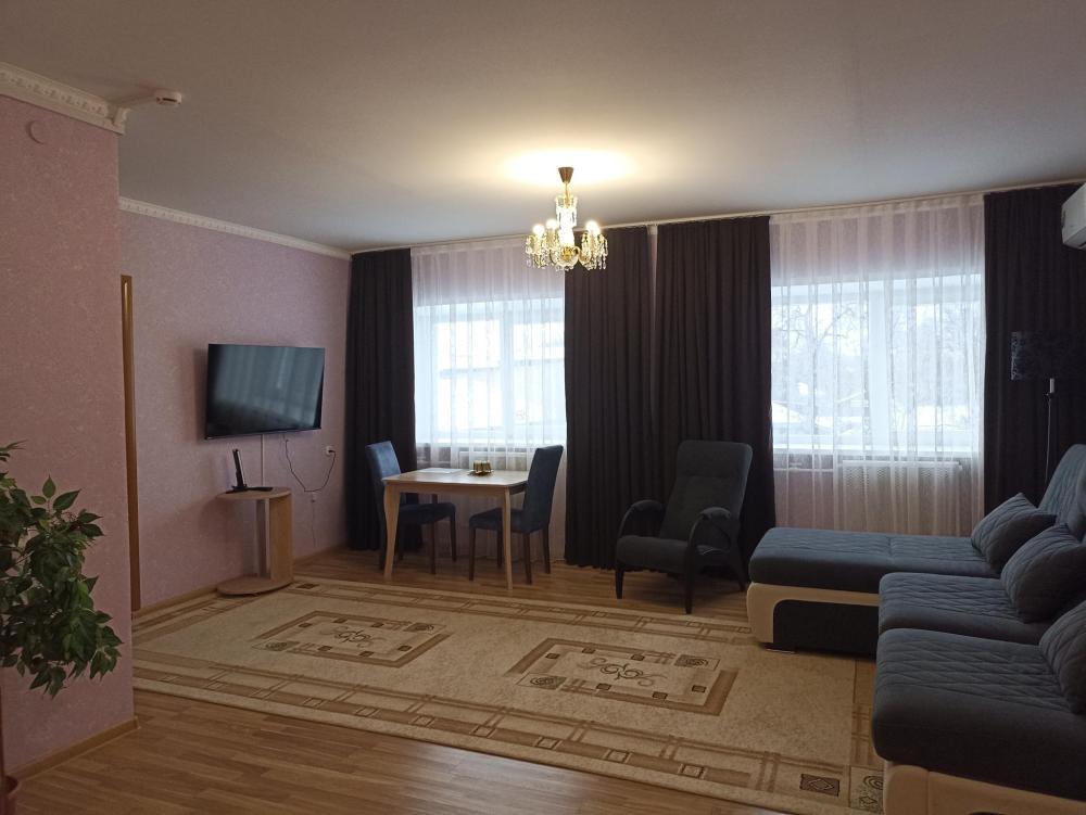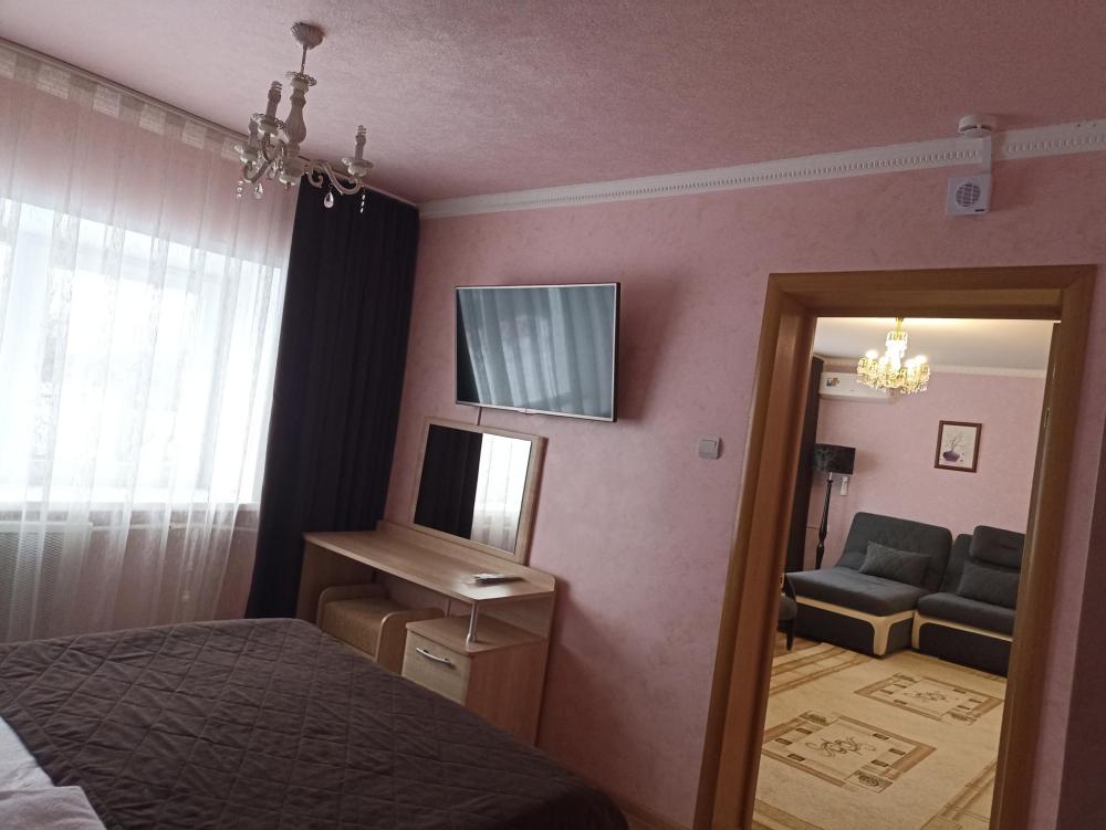 Двухкомнатный номер высшей категории комфорт-класса. Возможно размещение до 2 гостей с доплатой. В Спальне с двуспальная кровать, платяной шкаф, туалетный столик, прикроватные тумбочки. В гостиной комнате телевизор ЖК, холодильник, чайник, обеденный стол, журнальный столик, диван, шкаф- прихожая, сплит система-кондиционер. , СВЧ печь, бесплатный Wi-Fi Интернет. В ванной комнате: душевая кабинка. бойлер, фен. Предоставляется комплект одноразовых туалетных принадлежностей: мыло, шампунь, гель и лосьон для душа, зубная щетка и паста, а также шапочка для душа, тапочки, халат, рожок и губка для обуви. По запросу бритвенный набор. Двухкомнатный номер Люкс отлично подходит для комфортного семейного отдыха. Окна выходят в тихий двор.