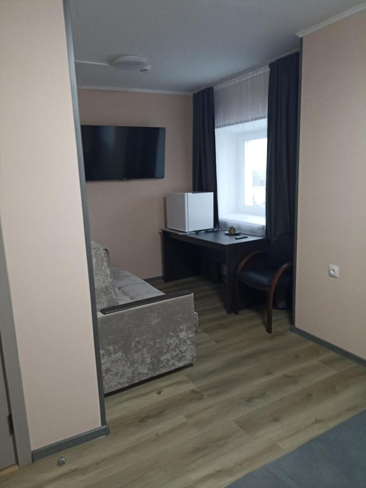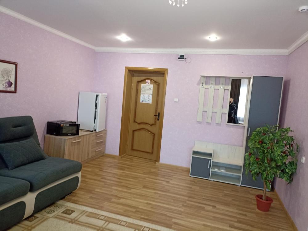 Однокомнатный номер: семейная кровать, телевизор ЖК, комод, холодильник, шкаф для одежды, обеденный стол (либо журнальный столик), стулья, чайник, прикроватная тумба.,диван, кресло, сплит система-кондиционер. В ванной: ванна. , фен, бойлер. Возможно размещение до 2 гостей с доплатой. Бесплатный Wi-Fi Интернет. Предоставляется комплект одноразовых туалетных принадлежностей: мыло, шампунь, зубная щетка и зубная паста, тапочки, халат, рожок, губка для обуви. По запросу бритвенный набор. Площадь номеров от 20,7 кв.м.до 23,4 кв.м.