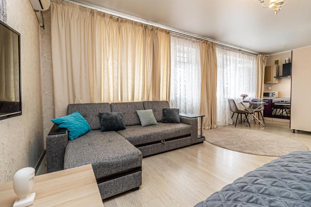 СПАЛЬНЫХ МЕСТ 4: комфортная двуспальная кровать и удобный диван ВАС ЖДЕТ: • Мультимедиа: WI FI, телевизор; • Бытовая техника: плита, холодильник, фен, утюг, стиральная машина, кондиционер; • Дополнительно: постельное белье, полотенца, средства гигиены, посуда, чай, сахар. Дизайнерский ремонт добавит расслабляющую атмосферу и хорошее настроение.