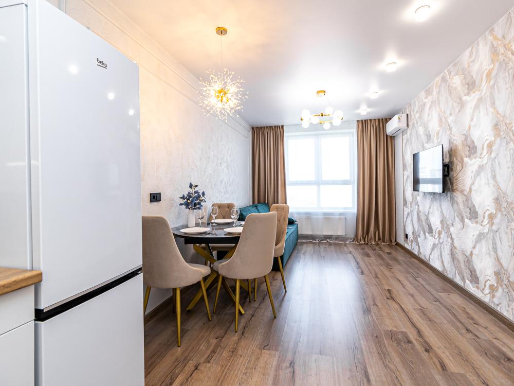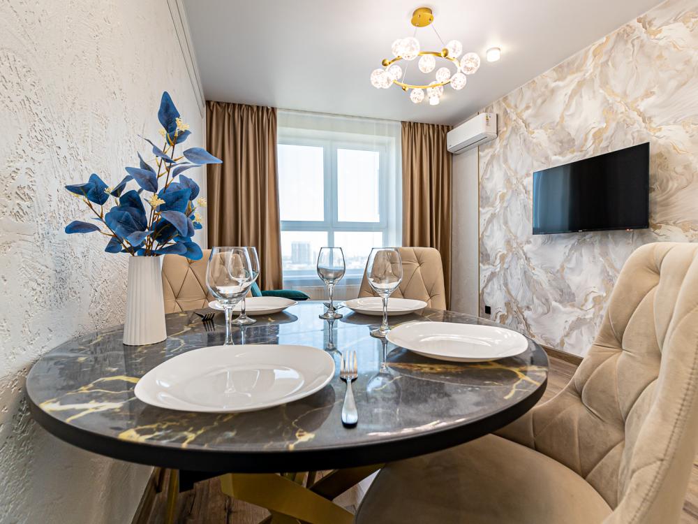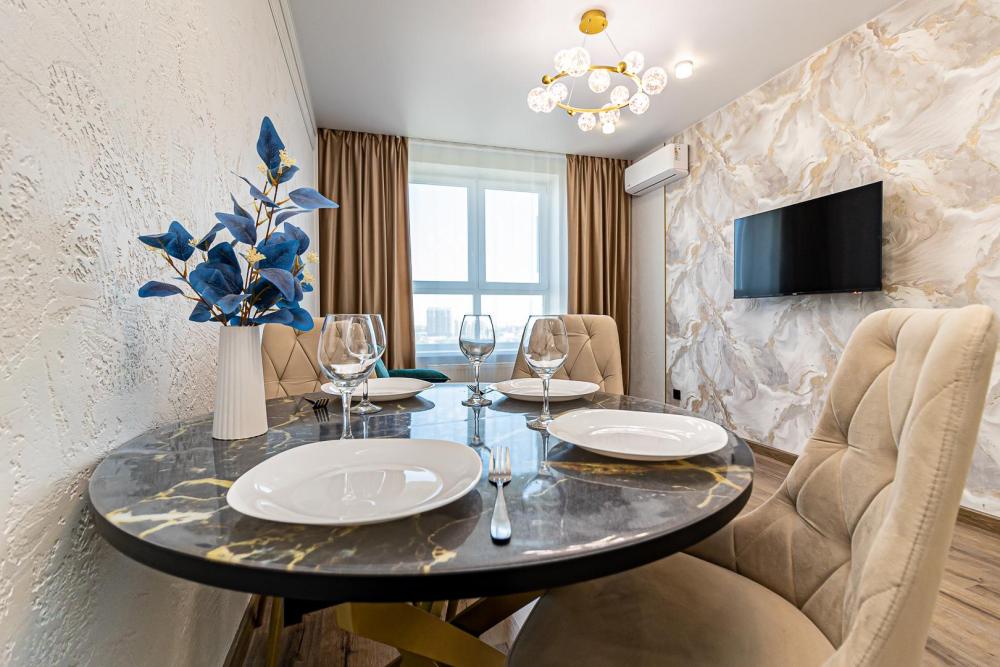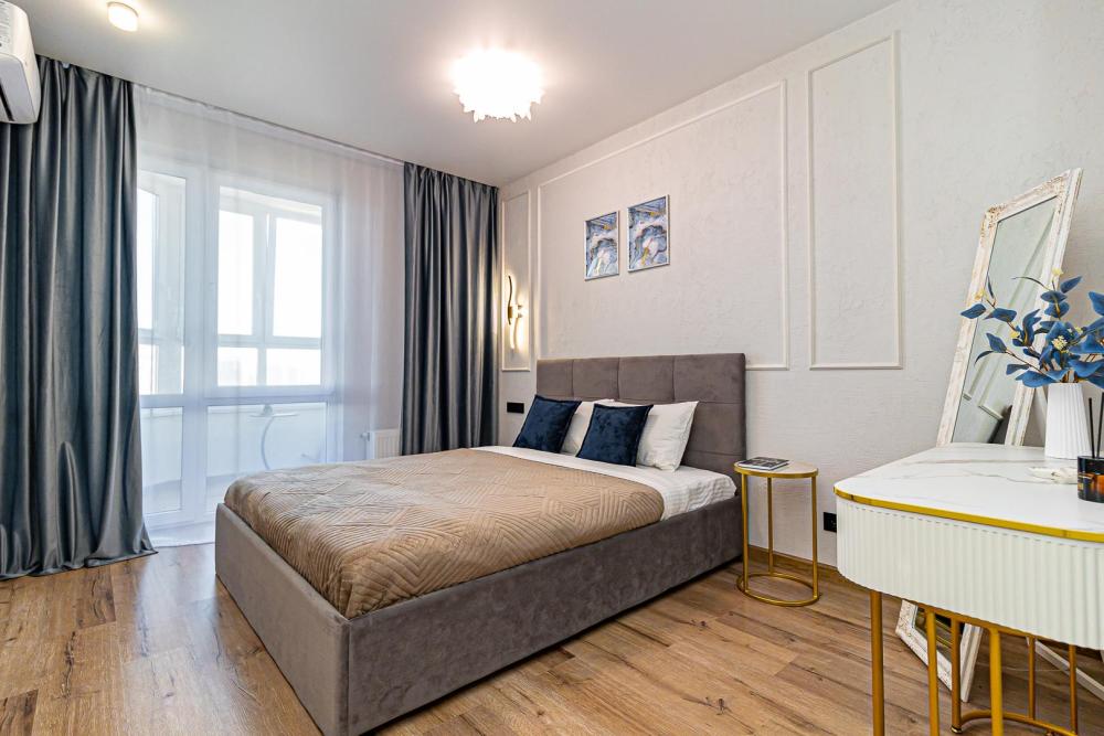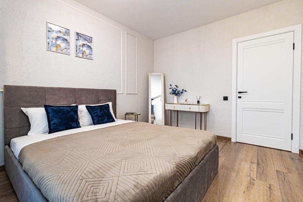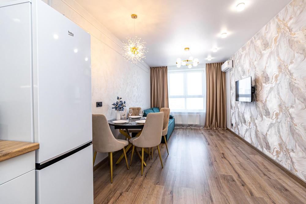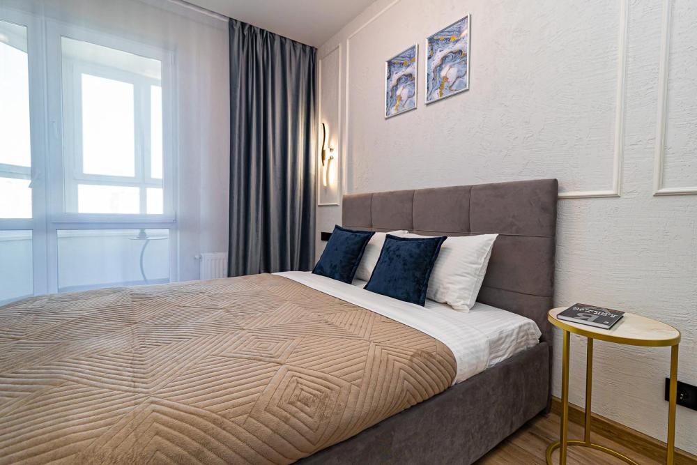 СПАЛЬНЫХ МЕСТ 4: двуспальная кровать 160*200 + удобный двуспальный диван В АПАРТАМЕНТАХ ВАС ЖДЕТ: • Мультимедиа: WI FI, телевизор; • Бытовая техника: кондиционер, плита, холодильник, фен, утюг, стиральная машина. • Дополнительно: постельное белье, полотенца, средства гигиены, посуда, чай, сахар. Дизайнерский ремонт добавит расслабляющую атмосферу и хорошее настроение.