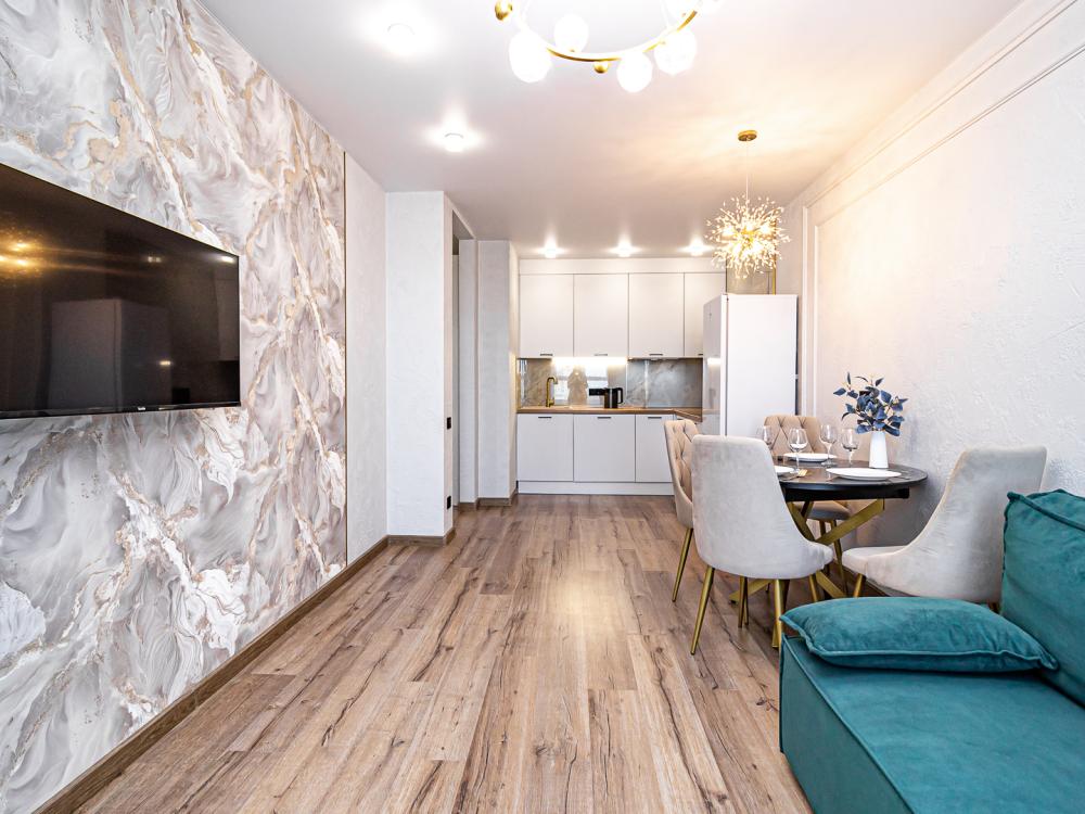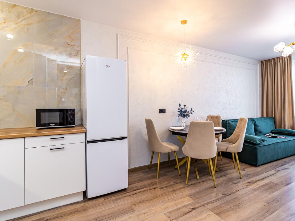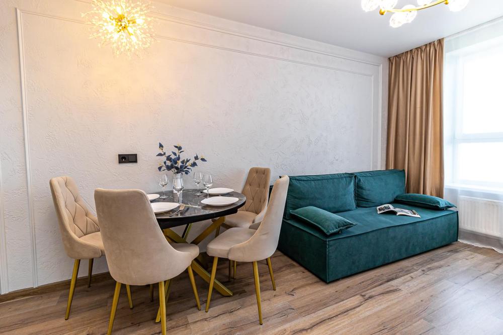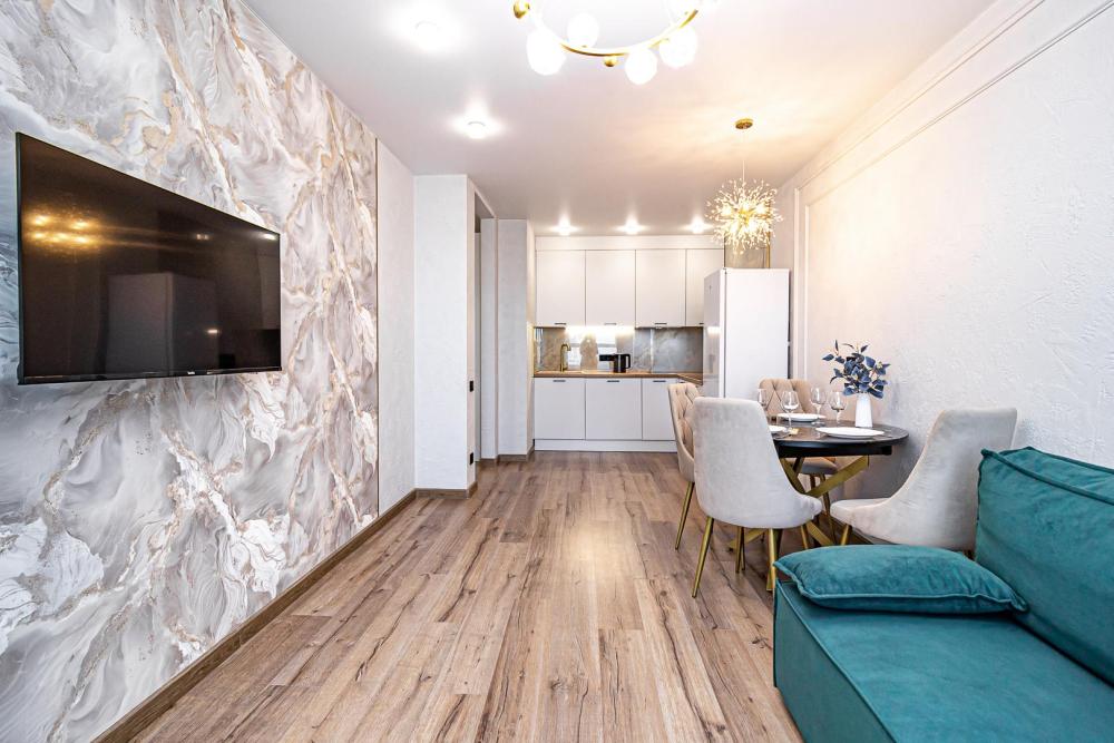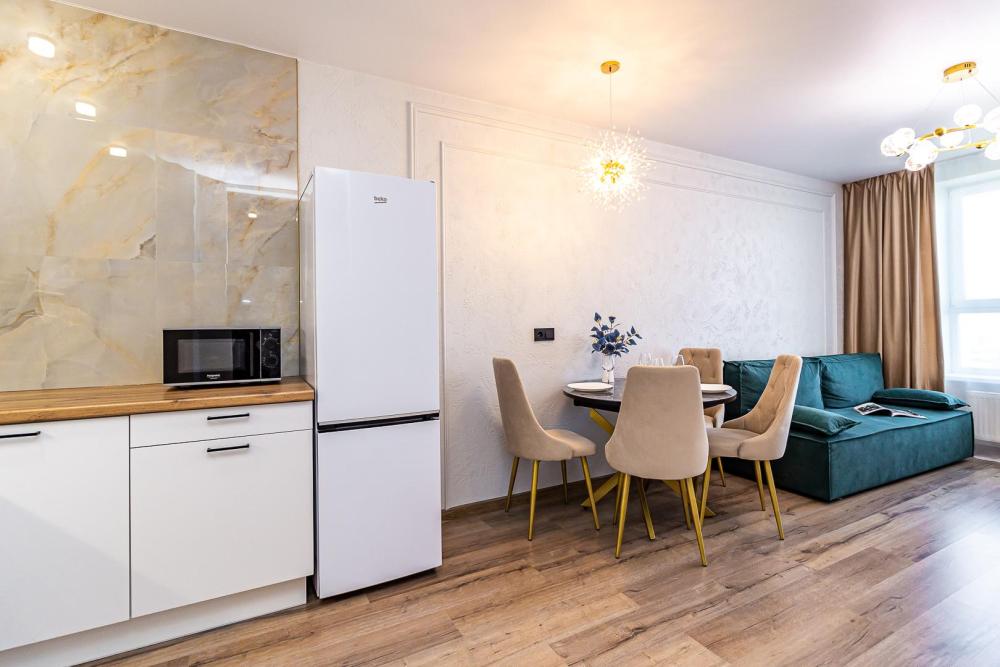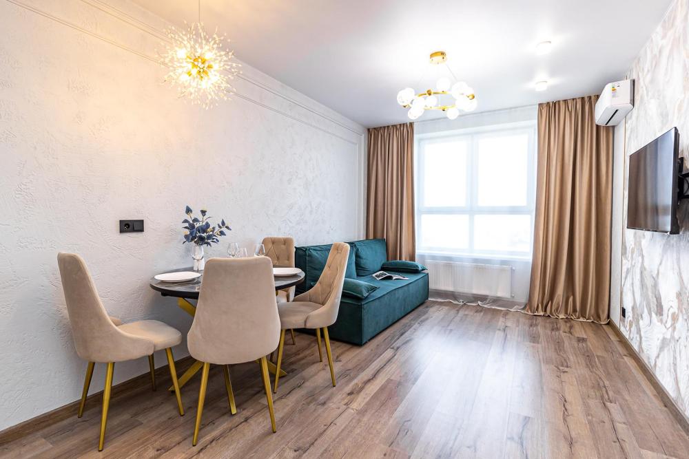 СПАЛЬНЫХ МЕСТ 4: двуспальная кровать 160*200 + удобный двуспальный диван В АПАРТАМЕНТАХ ВАС ЖДЕТ: • Мультимедиа: WI FI, телевизор; • Бытовая техника: кондиционер, плита, холодильник, фен, утюг, стиральная машина. • Дополнительно: постельное белье, полотенца, средства гигиены, посуда, чай, сахар. Дизайнерский ремонт добавит расслабляющую атмосферу и хорошее настроение.