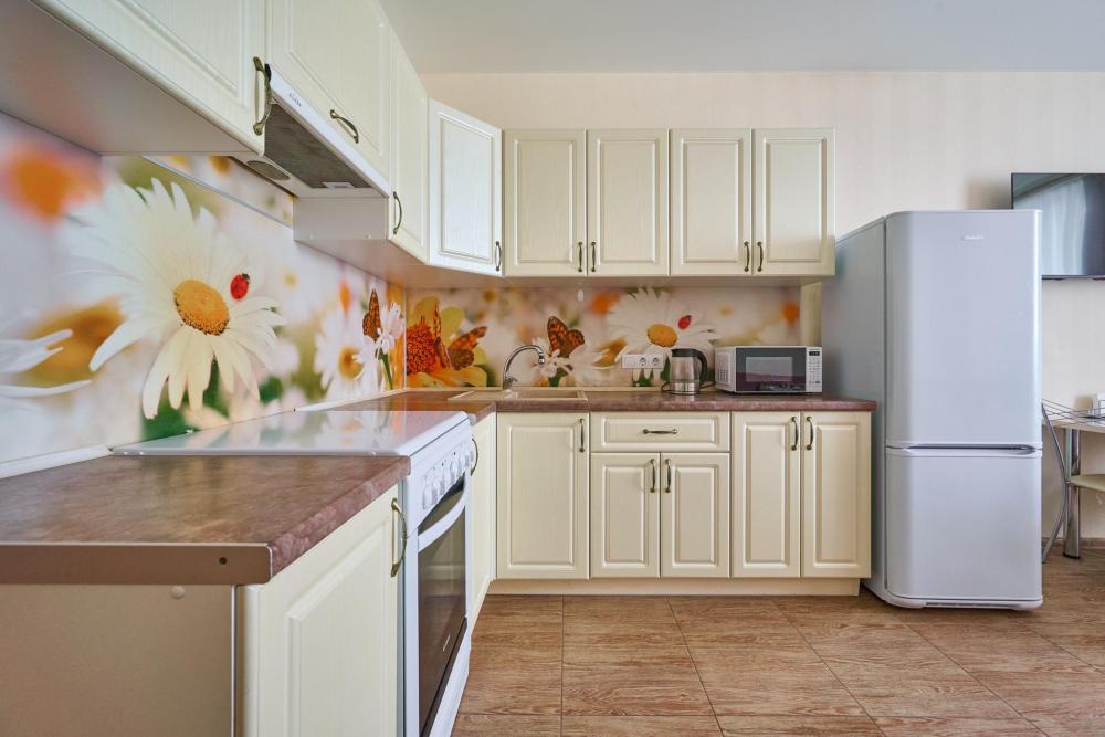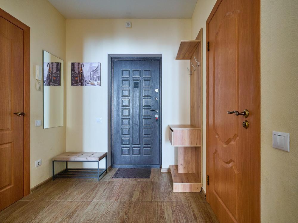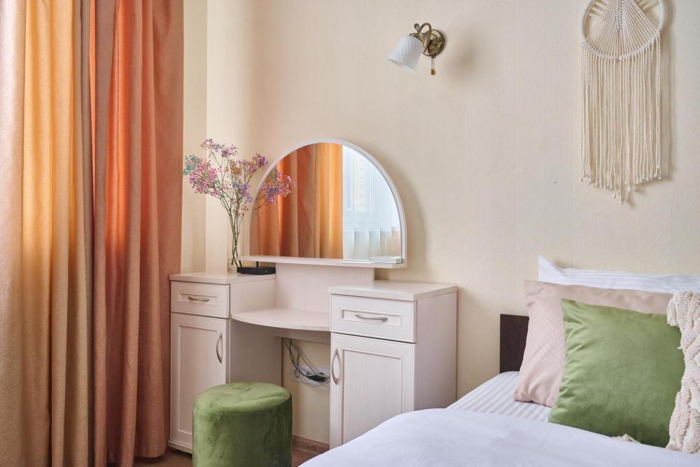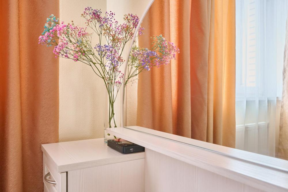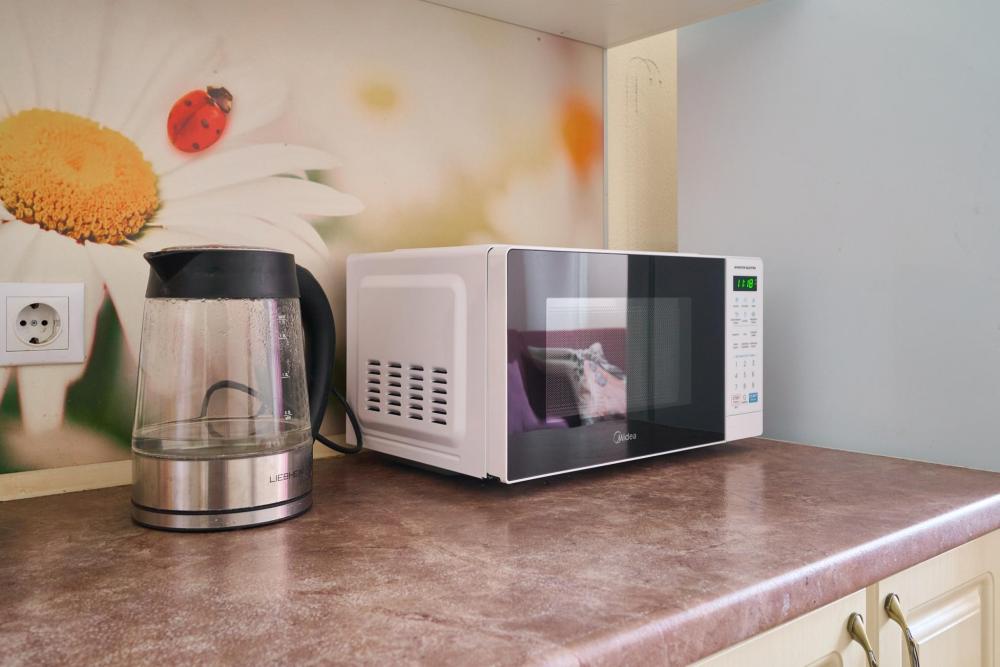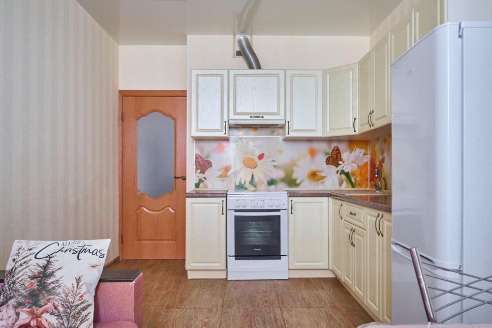 Двуспальная кровать 160х200 с белоснежным постельным бельем и раскладной диван 140х190 ? 2 ЖК телевизора: smart в кухне + в комнате ?Бесплатный Wi-Fi Кондиционер Ванна, стиральная машина, водонагреватель, средства гигиены (шампунь, гель для душа, мыло), махровые полотенца (по 2 каждому гостю) Сушилка для одежды, гладильная доска, утюг ? Эл.плита, холодильник, микроволновая печь, комплект посуды и столовых приборов ?электрический чайник, фен, пылесос Приветственные наборы для гостей: чай, кофе, турка для кофе, сахар, специи. По запросу предоставляем еженедельную уборку при проживании более 1 недели.
