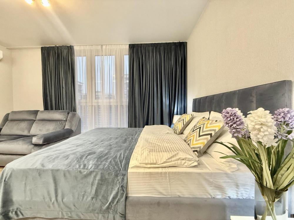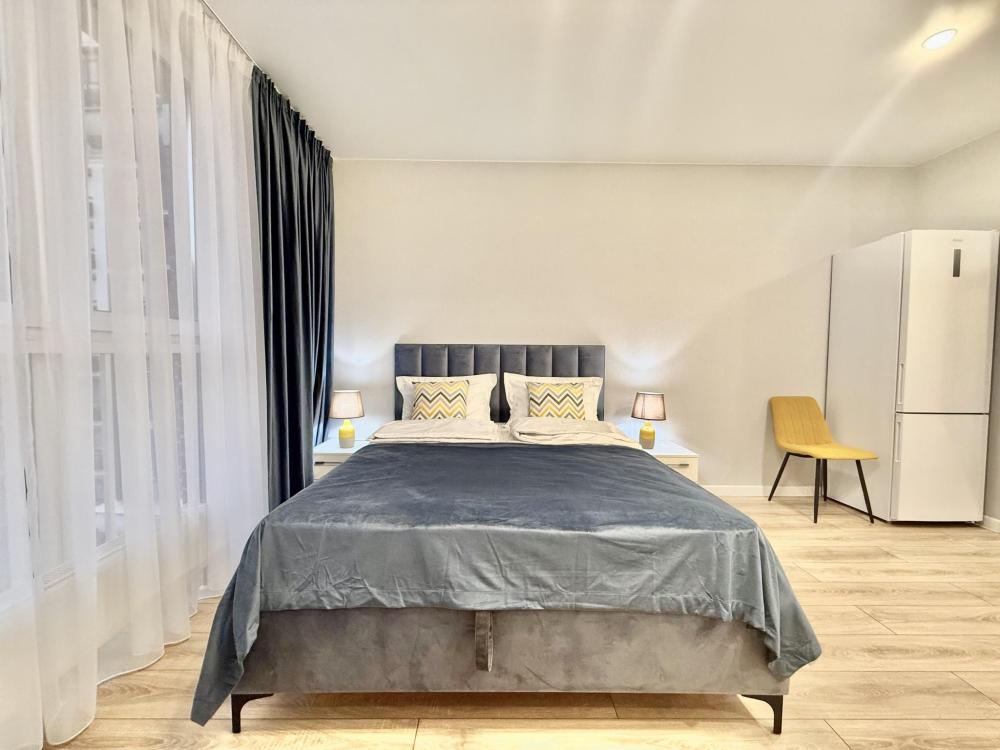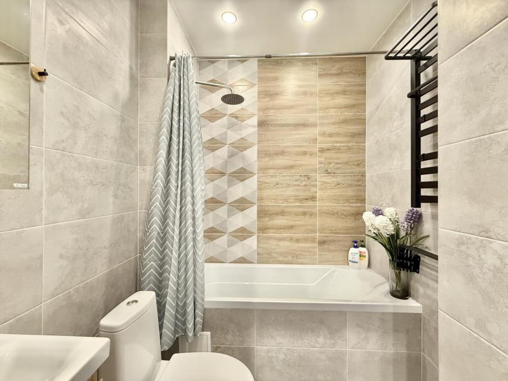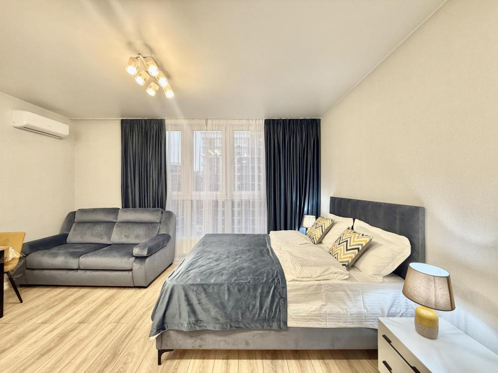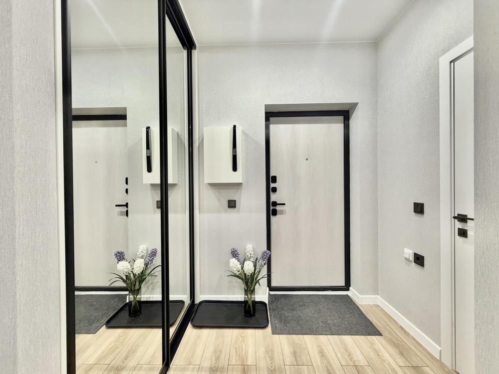 Уютные апартаменты, оборудованные всем необходимым для комфортного проживания. В апартаментах: двуспальная кровать с ортопедическим матрасом и двуспальный диван-кровать, высокоскоростной безлимитный Wi-FI и смарт ТВ, полноценная кухня с зоной готовки и бытовой техникой: посудомоечная машина, холодильник, варочная панель, духовой шкаф, СВЧ-печь, электрический чайник, необходимые мелочи для жизни: стиральная машина, сплит-система, фен, утюг, гладильная доска, сушилка, а так же посуда и столовые приборы, белоснежное хлопковое постельное белье и полотенца.