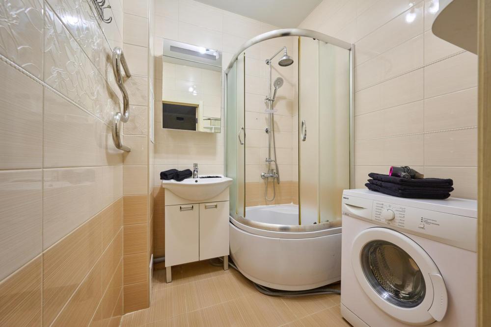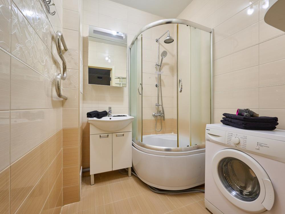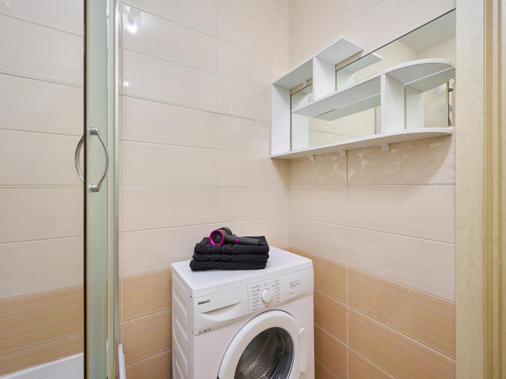 Вся необходимая техника: стиральная машина, кондиционер, микроволновая печь, фен.