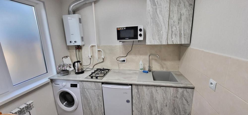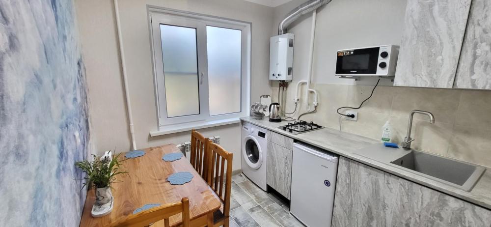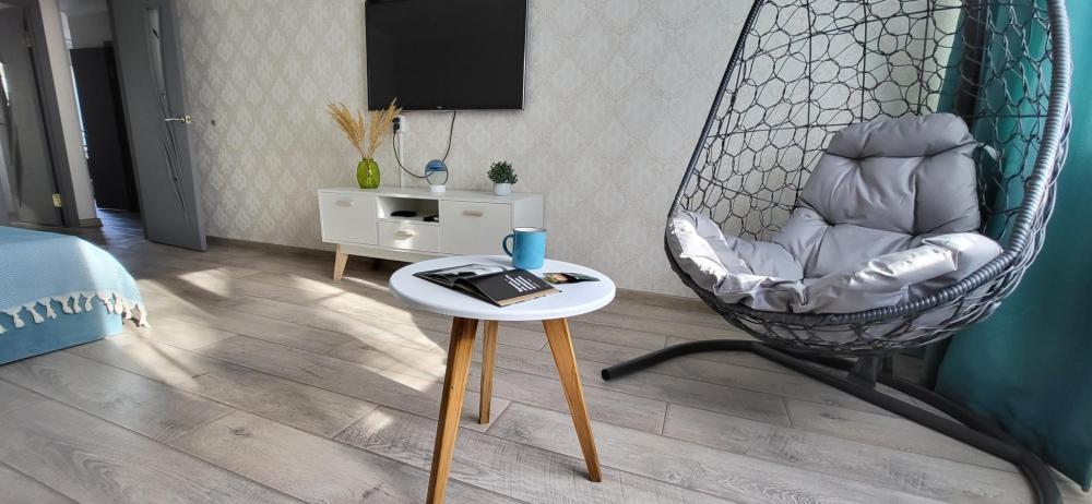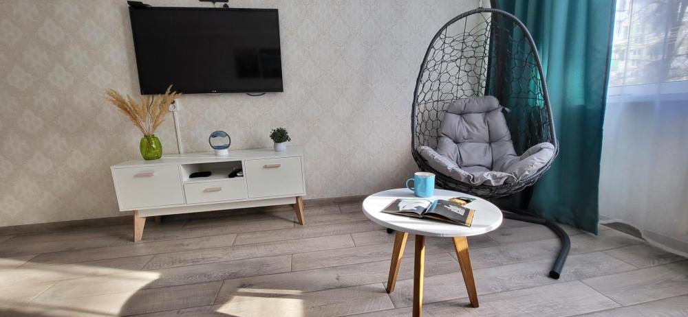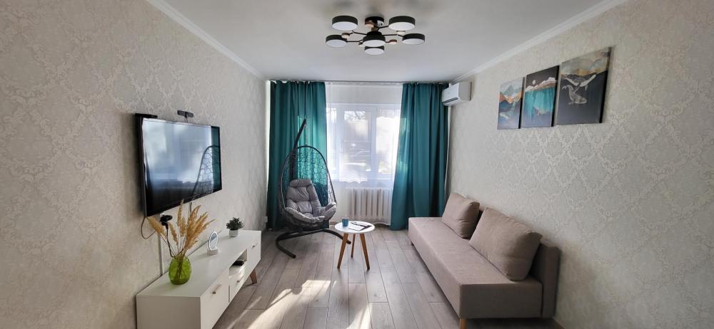 Просторная двухкомнатная квартира с ремонтом и изолированными комнатами. Классная планировка на обе стороны дома, уютная обстановка, наличие кресла-качели для комфортного отдыха и релаксации. Два телевизора в комнатах. Две сплит системы. Высокоскоростной интернет, Wi-Fi. Несколько одеял, много подушек, детские игрушки и горшок по запросу. Односпальная кровать имеет бортик для удобства мам и малышей, рядом двуспальный диван. Всегда в квартире есть дополнительный комплект качественного хлопкового постельного белья. Гель для душа, шампунь, мягкие полотенца. Чай, сахар, специи, масло, бакалея в наличии). Двуспальная кровать с ортопедическим матрасом и новые диваны 140х200 см помогут разместиться гостям в количестве до 6 человек. Имеется вся бытовая техника: два TV с приставкой для просмотра фильмов и интернет источников, две сплит-системы, фен, холодильник, стиральная машина, электрочайник, утюг и гладильная доска, микроволновка. Вся необходимая для приготовления и принятия пищи посуда и моющие средства.