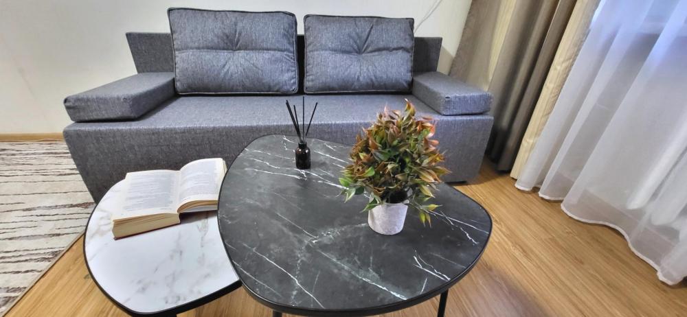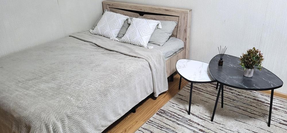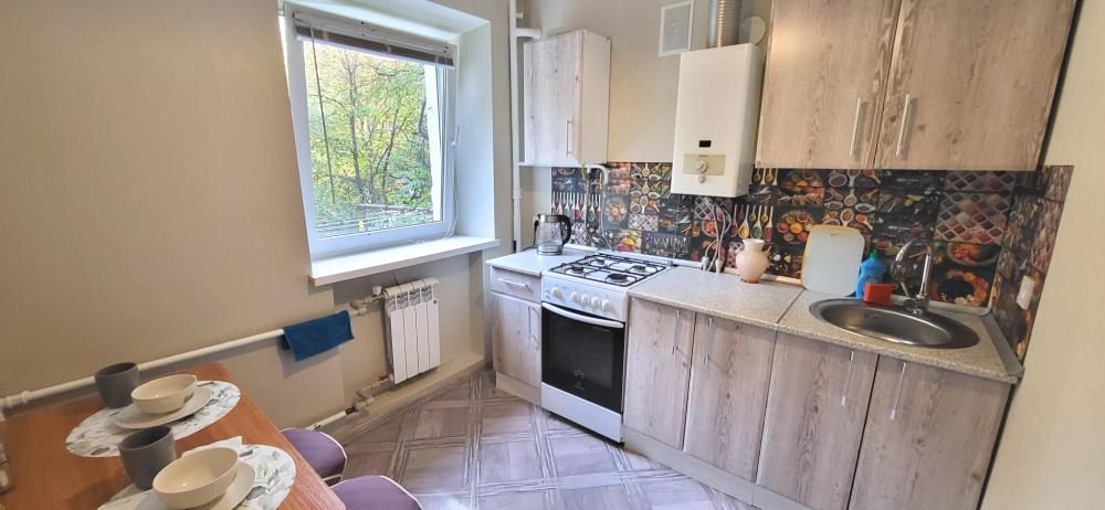 Квартира укомплектована для длительного проживания: кухня , стол, стулья, посуда для приготовления и приема пищи, микроволновая печь, газовая печь, холодильник; двуспальная кровать с удобным матрасом, новый раскладной диван 140х200 см, телевизор с 220 каналами, шкаф с большим количеством места для хранения вещей; ванная , стиральная машина, горячая вода есть всегда.