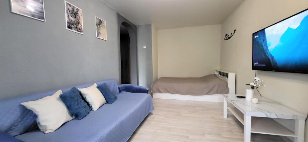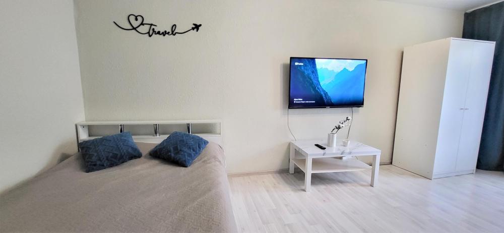 Смарт телевизор имеет доступ к сети. Интернет для просмотра любимых фильмов, приложений, проигрывания музыки. Всегда в квартире есть три комплекта качественного постельного белья. Чай, сахар, специи, масло, бакалея в наличии). Двуспальная кровать с матрасом и диван 140х200 см помогут разместиться гостям в количестве до 4-х человек. Имеется вся бытовая техника: Smart TV с большим экраном, фен, сплит-система, холодильник, стиральная машина, эл. чайник, утюг и гладильная доска, микроволновка. Высокоскоростной интернет, Wi-Fi . Вся необходимая для проживания посуда и моющие стирающие средства.