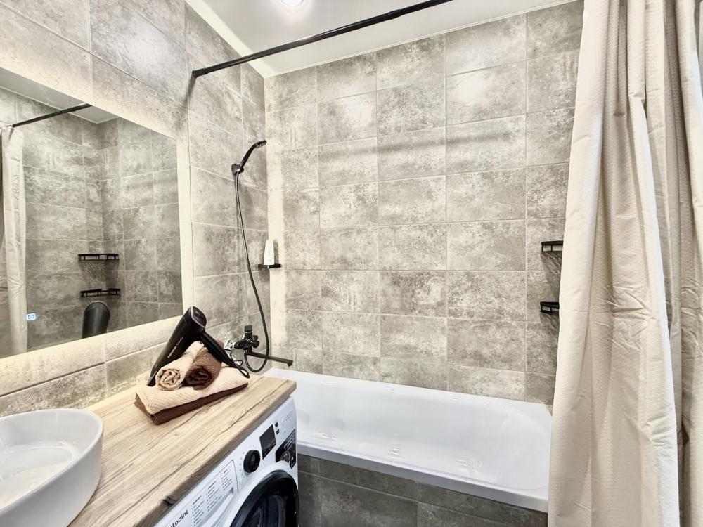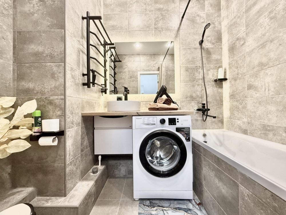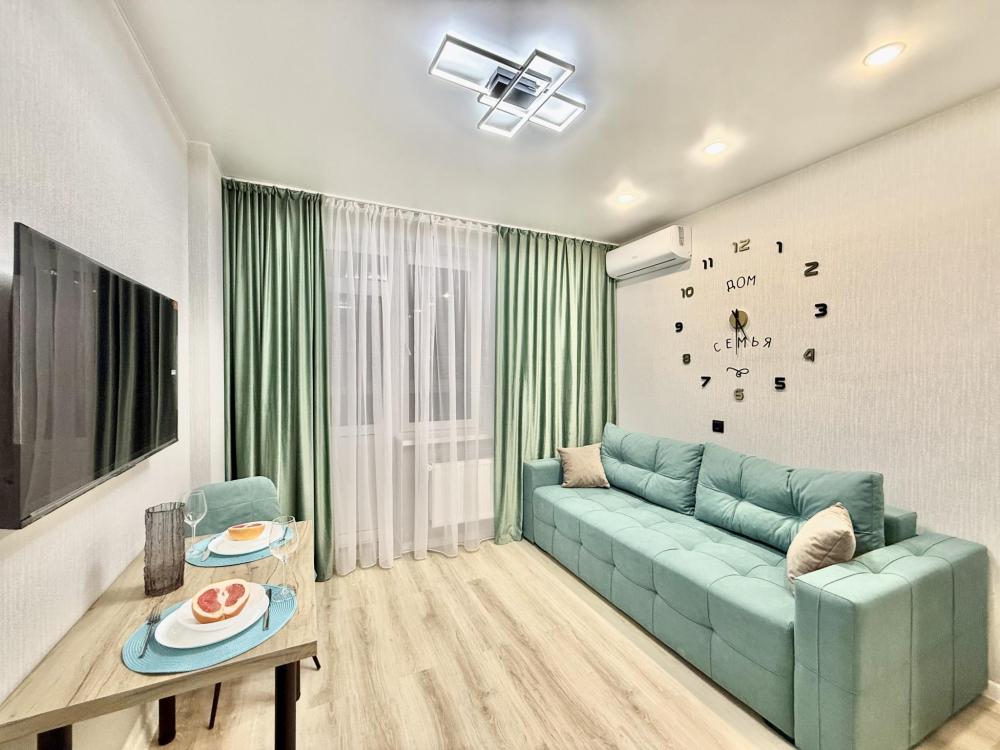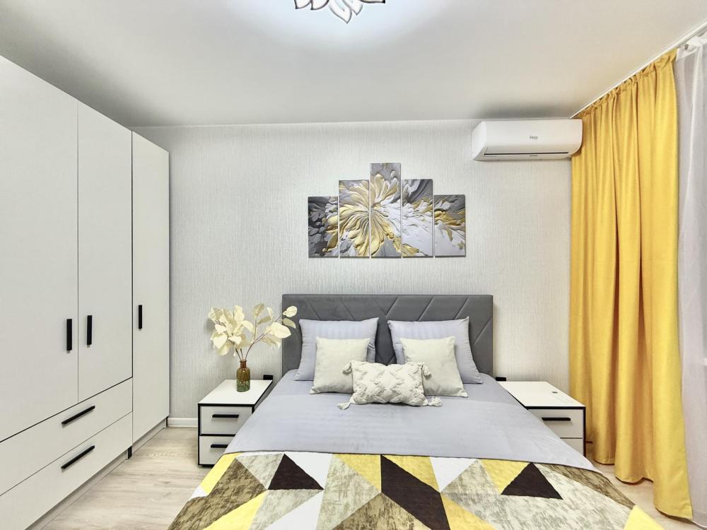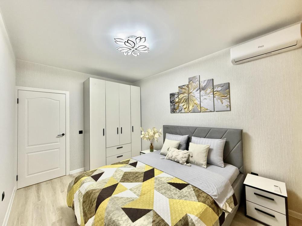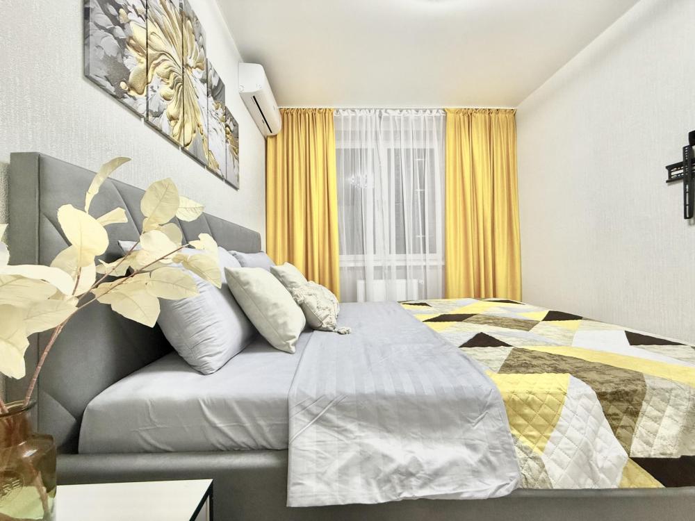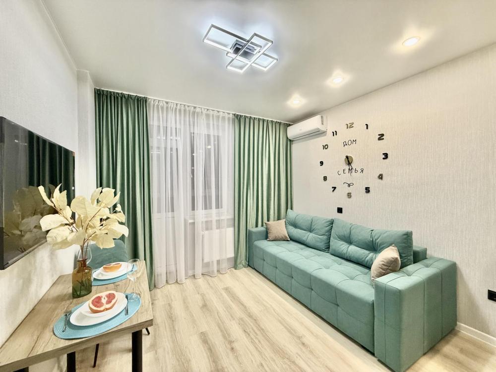Уютные апартаменты, оборудованные всем необходимым для комфортного проживания. В апартаментах: просторная двуспальная кровать с ортопедическим матрасом и двуспальный диван-кровать, безлимитный Wi-FI и смарт ТВ, полноценная кухня с зоной готовки и бытовой техникой: холодильник, варочная панель, СВЧ-печь, электрический чайник, необходимые мелочи для жизни: фен, утюг, гладильная доска, сушилка, а так же посуда и столовые приборы, стиральная машина, сплит-система, хлопковое постельное белье и полотенца.