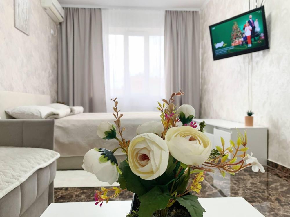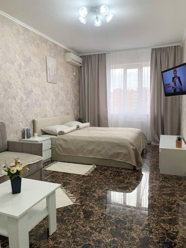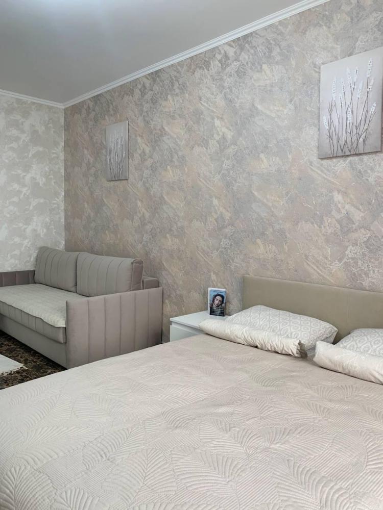 В апартаментах возможно размещение 4 человек. Спальные места: двуспальная кровать, раскладной диван. Кухня оборудована необходимой посудой и техникой: холодильник, варочная поверхность, микроволновая печь, электрический чайник. К услугам гостей также телевизор, wi-fi, кондиционер, стиральная машина, постельное белье, полотенца, гигиенические принадлежности.