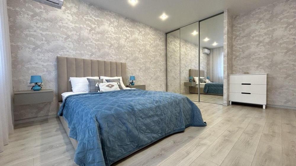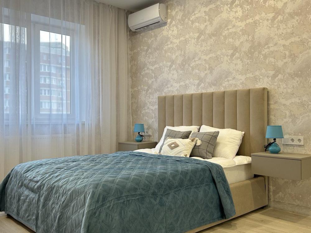 Светлые просторные апартаменты 46 м2 в Прикубанском районе Краснодара. Современный интерьер. Полное оснащение: сплит-система (климат-контроль), стиральная машина, варочная панель, микроволновая печь, чайник, фен, утюг. Просторная двуспальная кровать с ортопедическим матрацем и удобный диван. Постельное белье и полотенца. Wi-Fi, интернет-телевидение. ? Парковка во дворе дома. Остановка общественного транспорта в трех минутах ходьбы. Рядом: ул. Тургенева, ул. Яна Полуяна, ул. Памяти Чернобыльцев, ул. Дальняя, ул. Гаражная. Рестораны, кафе, магазины и аптеки в шаговой доступности.