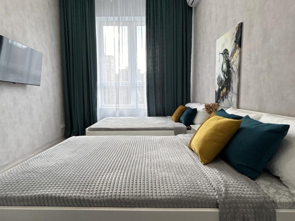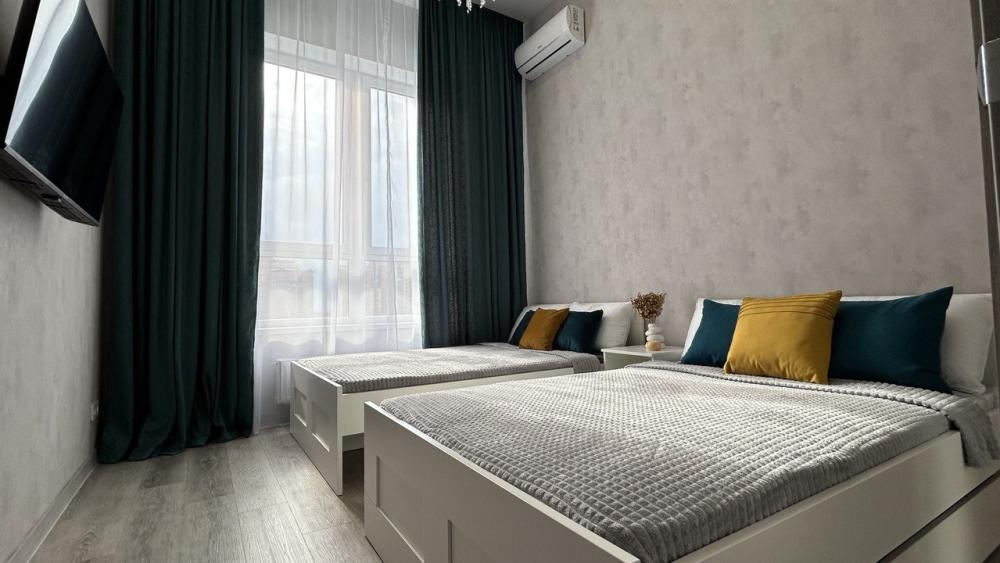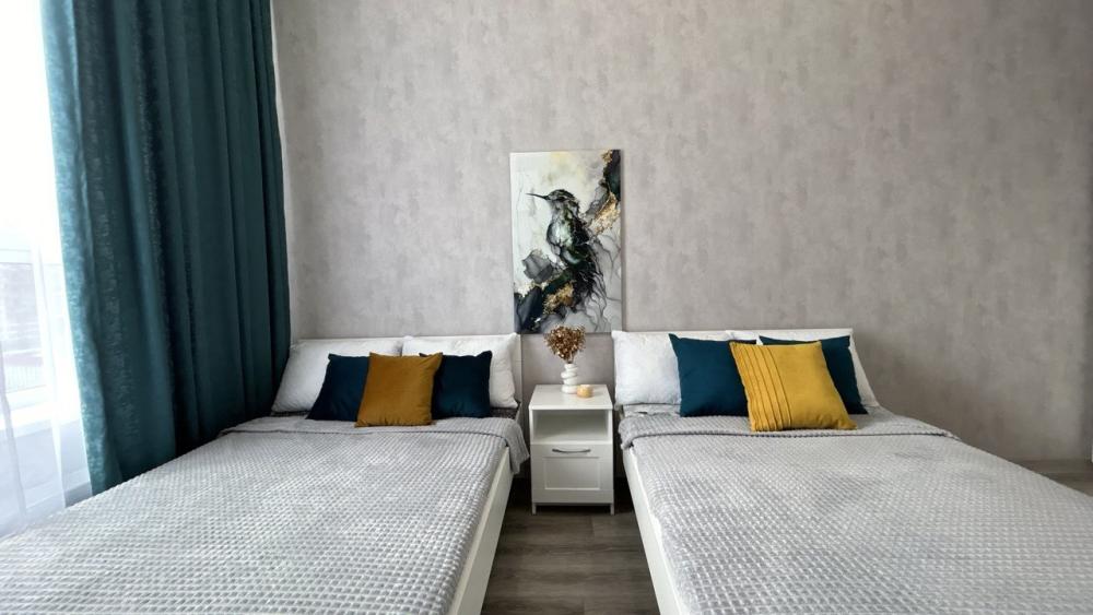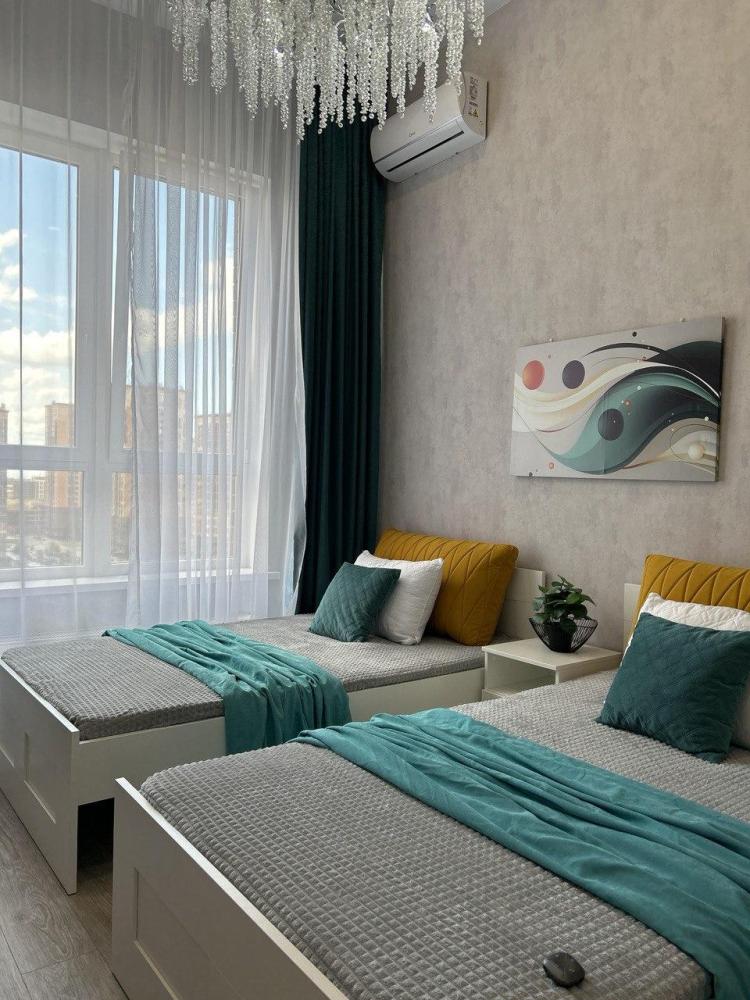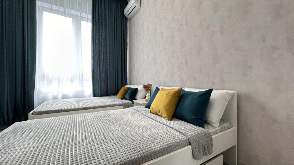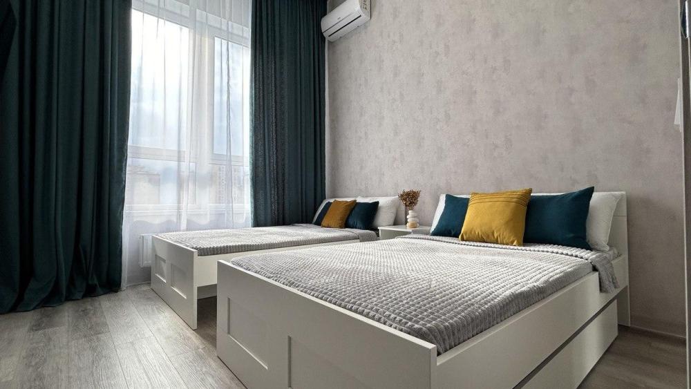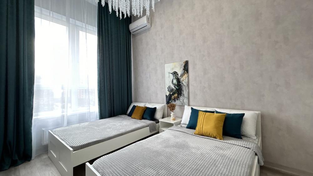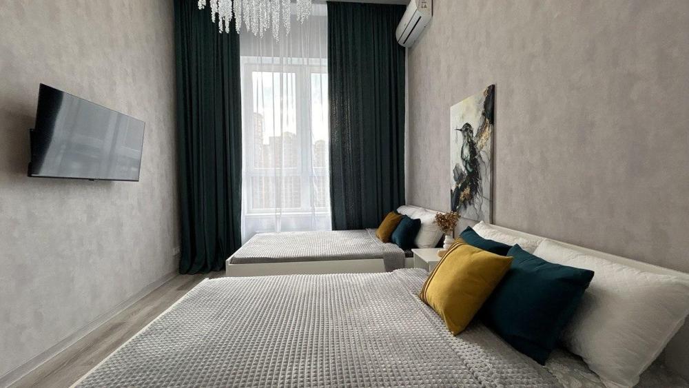 Светлые, просторные апартаменты площадью 38 м² в Прикубанском районе Краснодара. В квартире 4 спальных места: 2 кровати и удобный диван. Современный интерьер, создающий уютную атмосферу для отдыха и работы. Полное оснащение: сплит-система для комфортной температуры, стиральная машина, варочная панель, микроволновая печь, чайник, фен и утюг – всё для вашего удобства. Просторная двуспальная кровать с ортопедическим матрацем, а также удобный диван и дополнительный диван на кухне. Постельное белье и полотенца предоставляются. Полный комплект посуды и приборов для приготовления и приема пищи. Wi-Fi и интернет-телевидение позволят оставаться на связи и развлекаться. Парковка во дворе дома обеспечивает удобство для владельцев автомобилей. Вблизи находятся ТЦ «Красная площадь», выставочный центр «Экспоград-Юг», спортивный комплекс Баскет-холл, Лётное училище, авиагородок, Академия МВД и Академия ФК Краснодар. Рядом расположены кафе и рестораны для приятного отдыха, детские и спортивные площадки, продуктовые магазины и аптеки, фитнес-клубы, автосалоны и крупные торговые центры Леруа Мерлен и Бауцентр, гипермаркет Магнит, а также банкоматы.