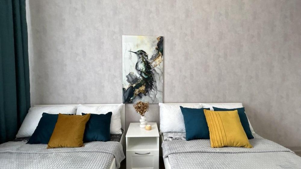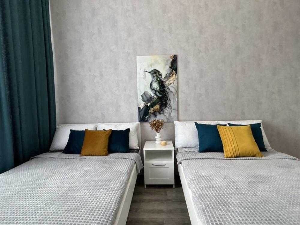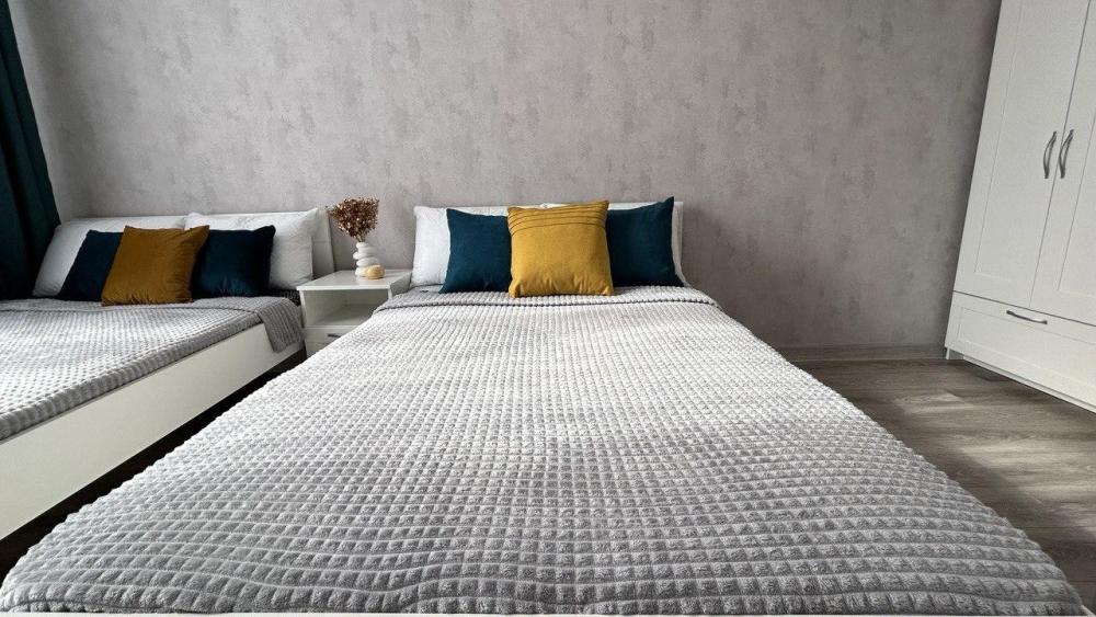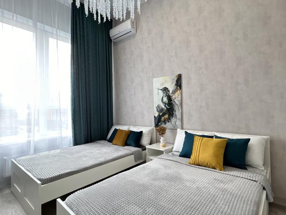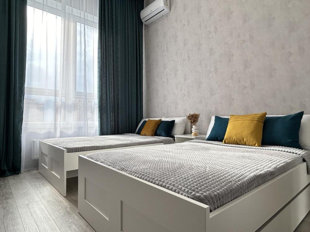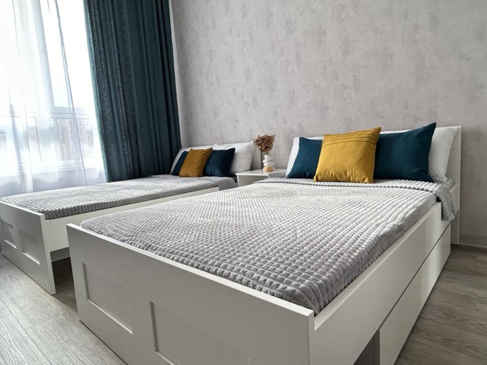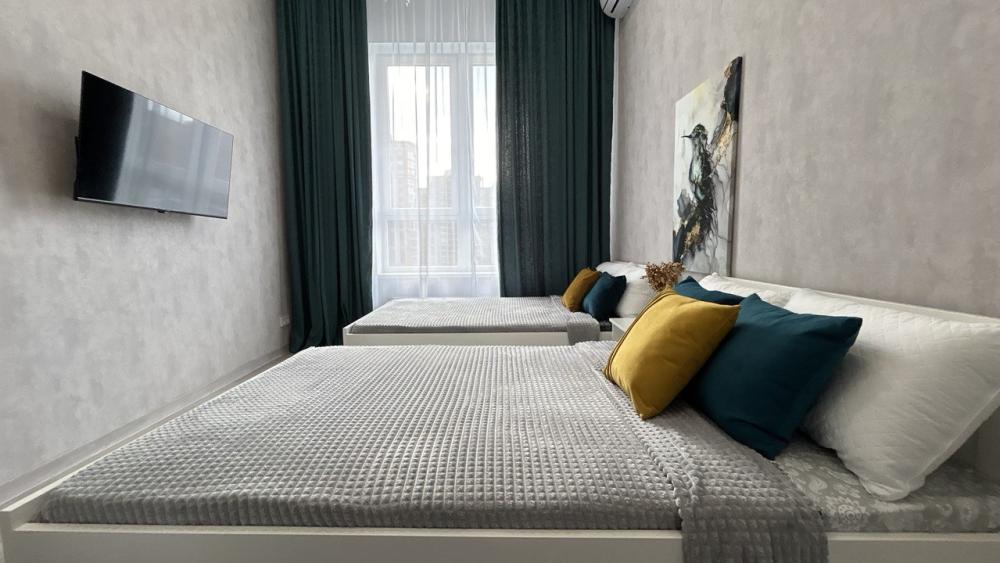 Светлые, просторные апартаменты площадью 38 м² в Прикубанском районе Краснодара. В квартире 4 спальных места: 2 кровати и удобный диван. Современный интерьер, создающий уютную атмосферу для отдыха и работы. Полное оснащение: сплит-система для комфортной температуры, стиральная машина, варочная панель, микроволновая печь, чайник, фен и утюг – всё для вашего удобства. Просторная двуспальная кровать с ортопедическим матрацем, а также удобный диван и дополнительный диван на кухне. Постельное белье и полотенца предоставляются. Полный комплект посуды и приборов для приготовления и приема пищи. Wi-Fi и интернет-телевидение позволят оставаться на связи и развлекаться. Парковка во дворе дома обеспечивает удобство для владельцев автомобилей. Вблизи находятся ТЦ «Красная площадь», выставочный центр «Экспоград-Юг», спортивный комплекс Баскет-холл, Лётное училище, авиагородок, Академия МВД и Академия ФК Краснодар. Рядом расположены кафе и рестораны для приятного отдыха, детские и спортивные площадки, продуктовые магазины и аптеки, фитнес-клубы, автосалоны и крупные торговые центры Леруа Мерлен и Бауцентр, гипермаркет Магнит, а также банкоматы.