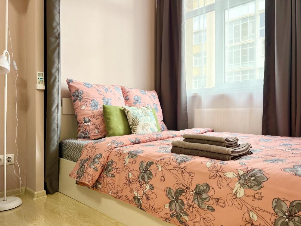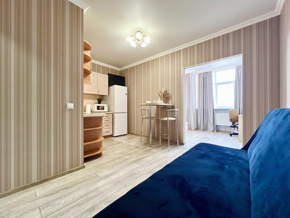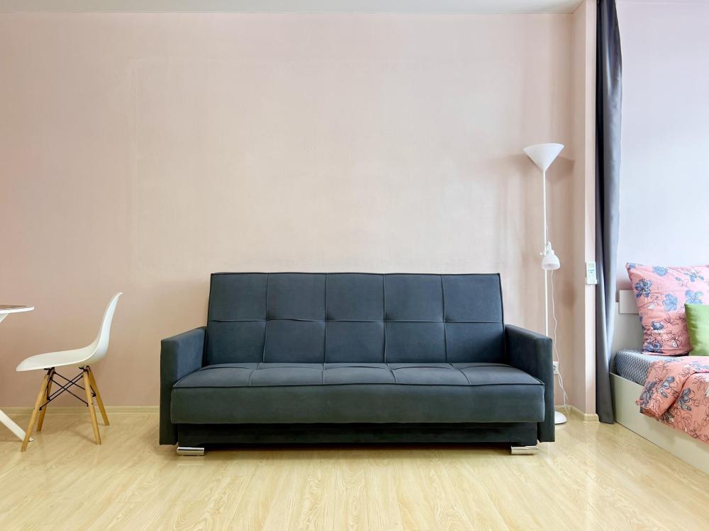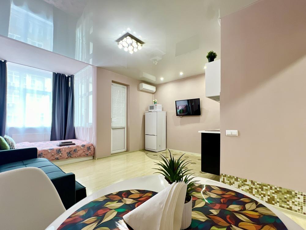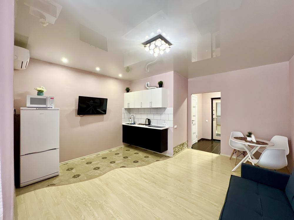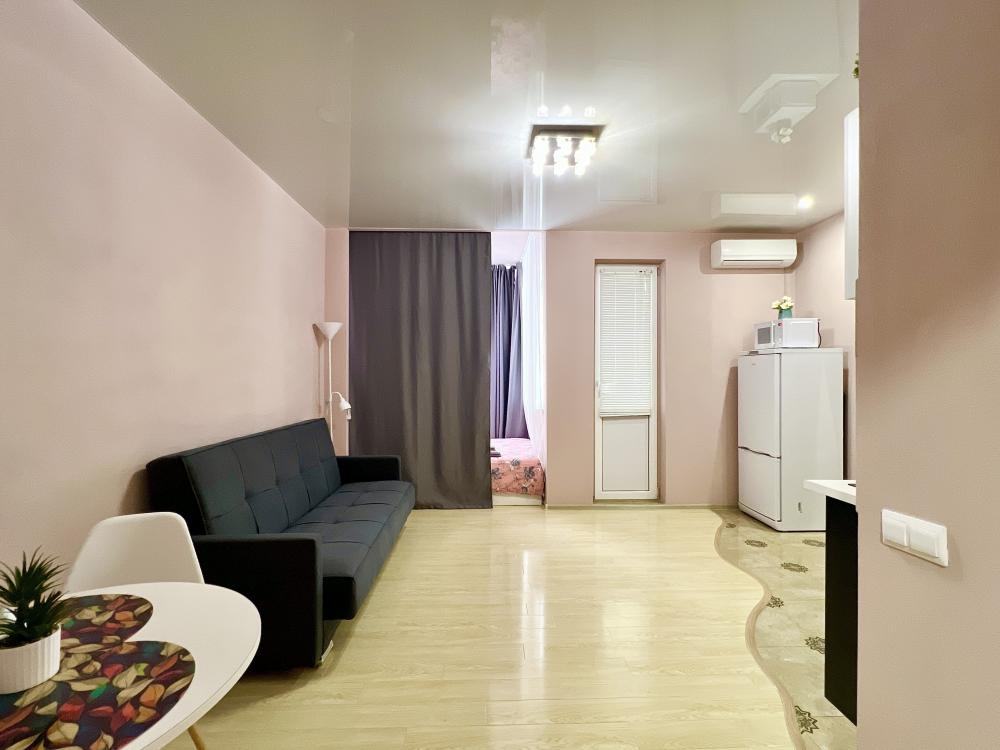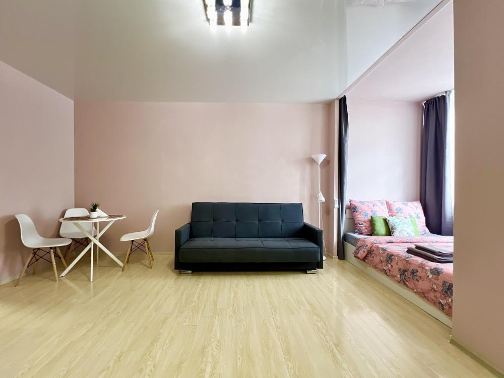 Уютные апартаменты студия, оборудованные всем необходимым для комфортного проживания. В апартаментах: двуспальная кровать, раскладной диван, полностью оборудованная кухне с бытовой техникой и посудой, есть плита, электрический чайник, микроволновая печь и холодильник, стиральная машина, утюг и гладильная доска. Ванная комната с чистой и исправной сантехникой, всегда горячая и холодная вода т.к. есть бойлер. Всегда свежие полотенца и постельное бельё. Также в квартире имеется Wi-Fi и TV.