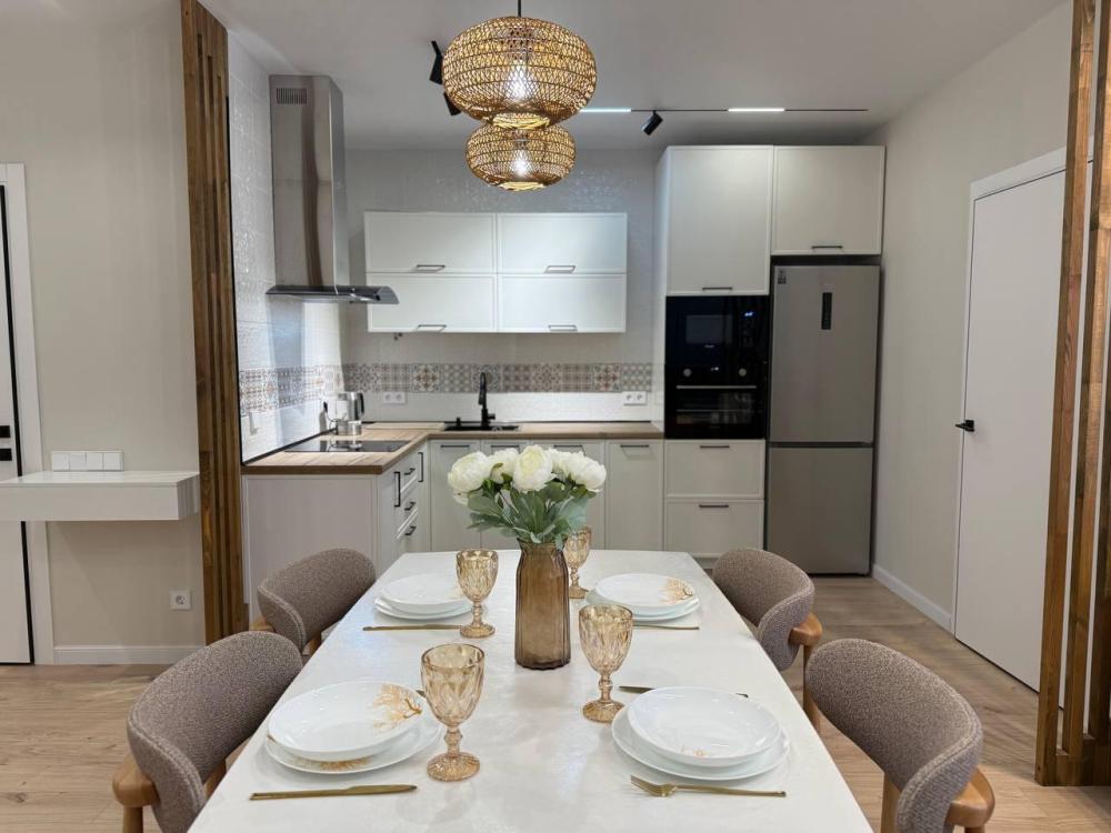 Квартира рядом с ТЦ Стрелка. Табрис, Ростикс, ТЦ Мандарин, кафе, рестораны, ТЦ Стрелка в шаговой доступности. Апартаменты полностью укомплектованы техникой, мебелью и гигиеническими средствами. 100% соответствие фото. На первом месте у нас - сервис, чистота и комфорт для гостей. В квартире комфортно можно разместить 6 человек . У нас есть Двуспальная (160×200) кровать с ортопедическим матрасом. 2-х спальный раскладной диван (160х200) и мини диван (140х200). Шторы блэк аут, качественное постельное бельё для комфортного сна. SМАRТ ТV с функцией выхода в интернет. Для вас бесплатно кофе, чай, гигиенические принадлежности, полотенца и тапочки. Для командированных предоставляются отчётные документы.