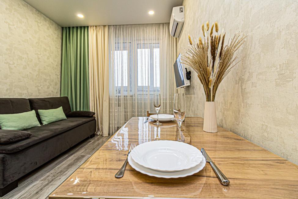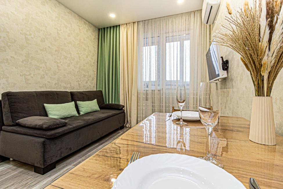 Квартира рассчитана для проживания 4-х человек. Спальных мест 2+2 ( двуспальная кровать и двуспальный диван). В квартире есть все необходимое для проживания постельное белье, комплект полотенец, посуда, кабельное ТВ и wi-fi.