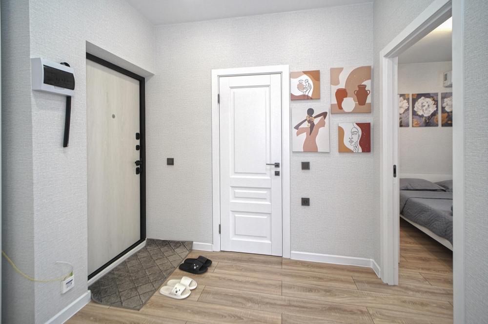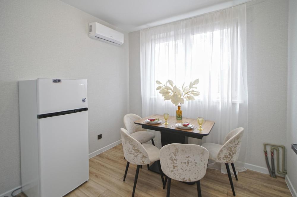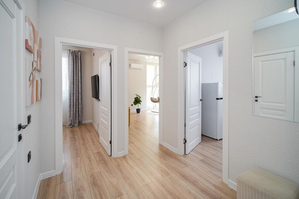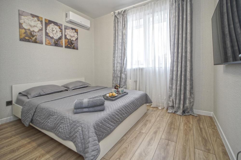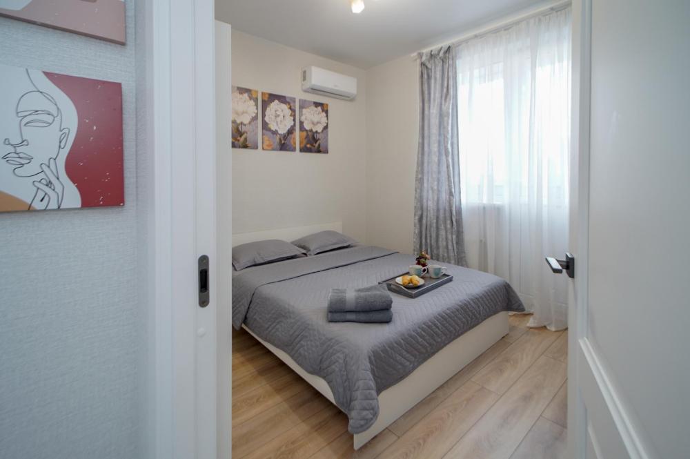 Двухкомнатные апapтаменты для 5 гостей. Спальные места: диван, двуспальная кровать и евро раскладушка. На кухне плита, духовка, холодильник, свч и вся необходимая посуда. Есть балкон. В квартире есть кабельное ТВ, телевизор, кондиционер, Wi-Fi. Полотенца и постельное белье предоставляются.