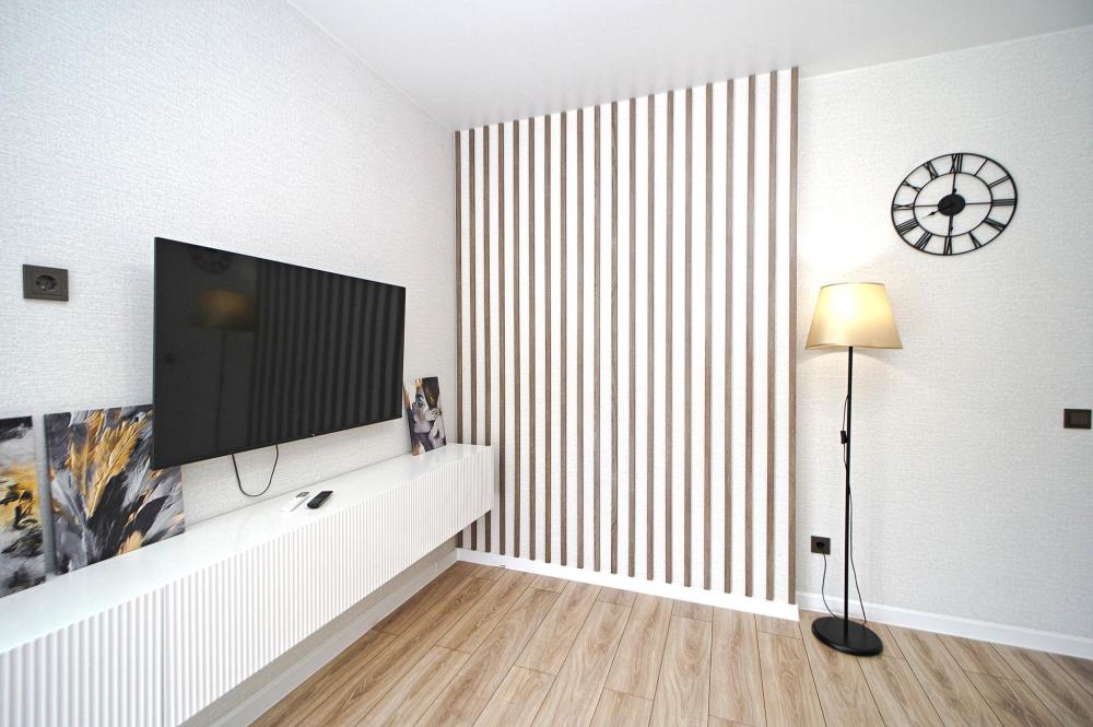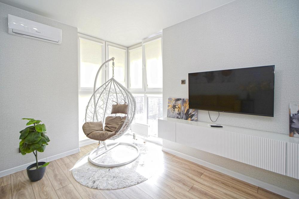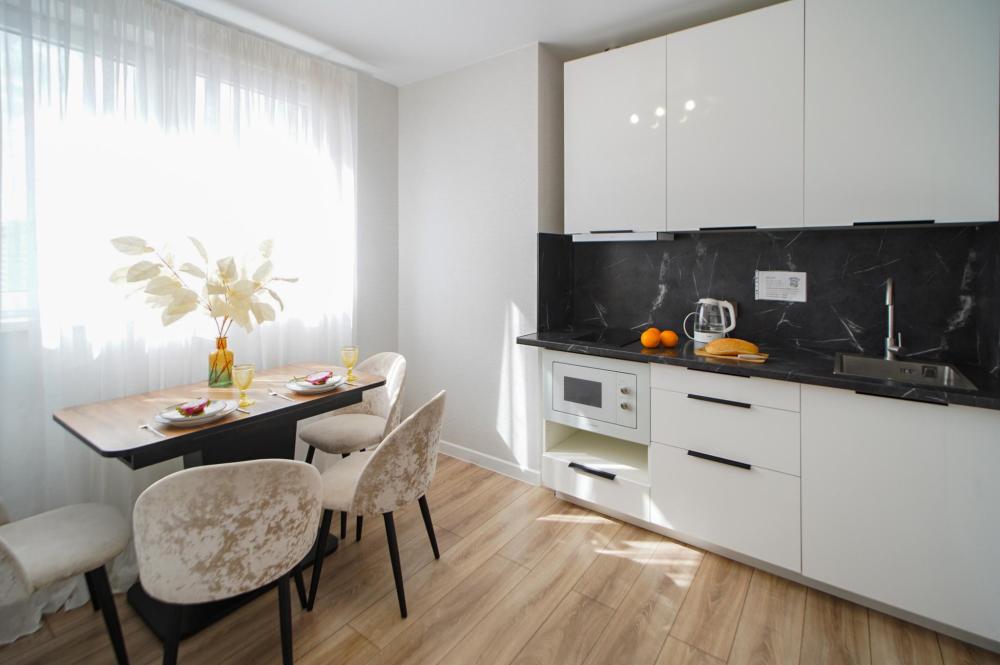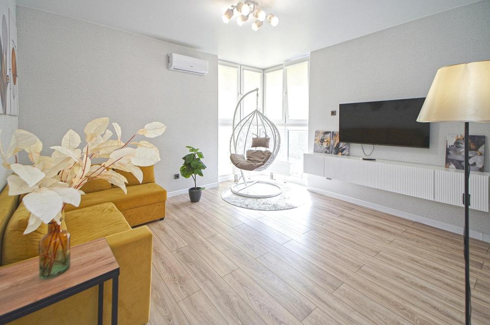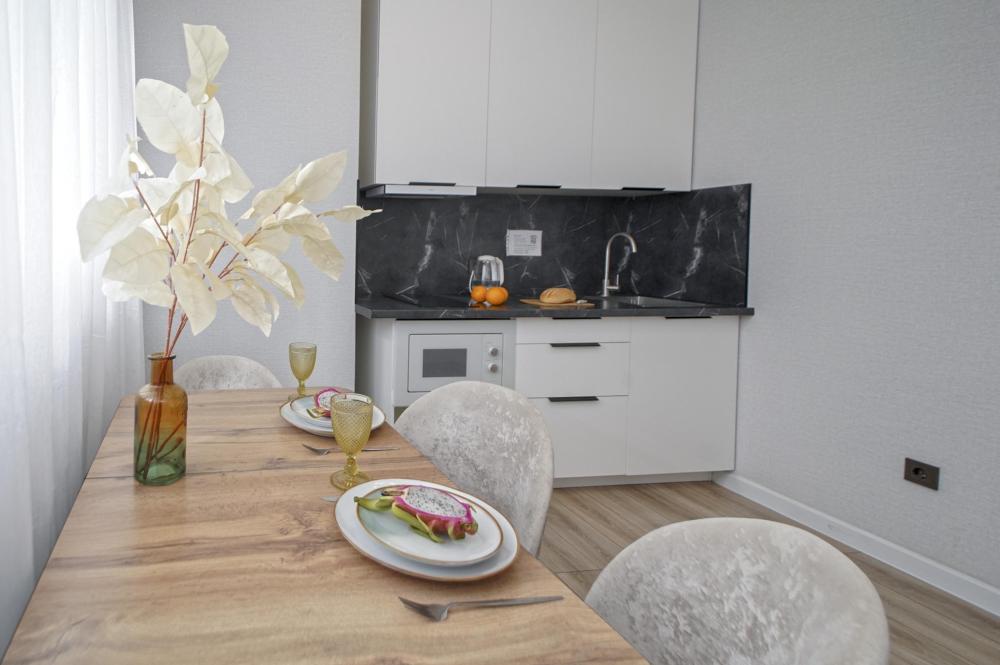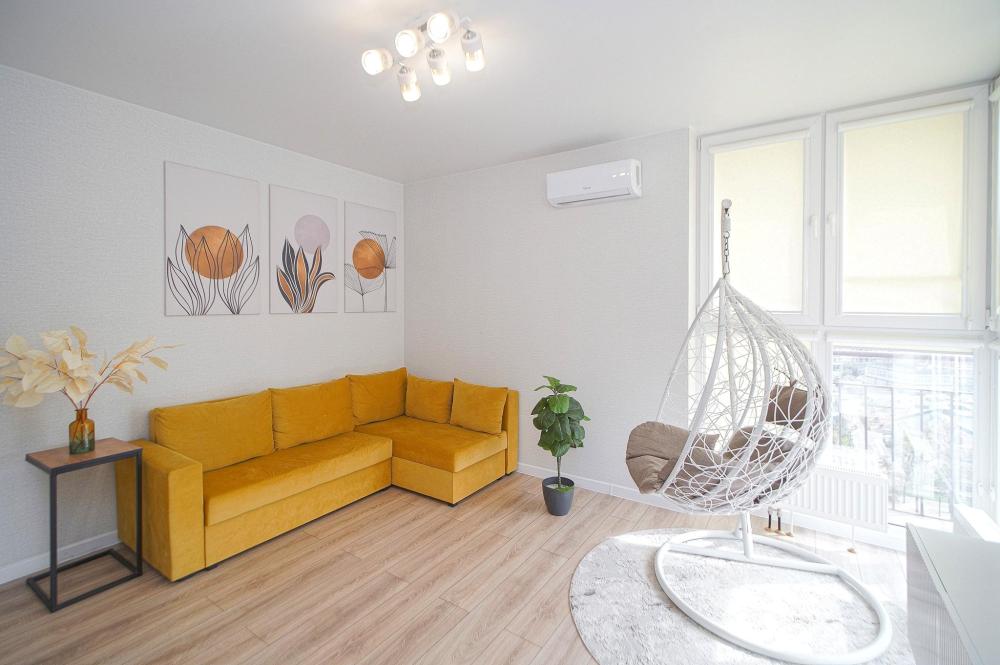 Двухкомнатные апapтаменты для 5 гостей. Спальные места: диван, двуспальная кровать и евро раскладушка. На кухне плита, духовка, холодильник, свч и вся необходимая посуда. Есть балкон. В квартире есть кабельное ТВ, телевизор, кондиционер, Wi-Fi. Полотенца и постельное белье предоставляются.